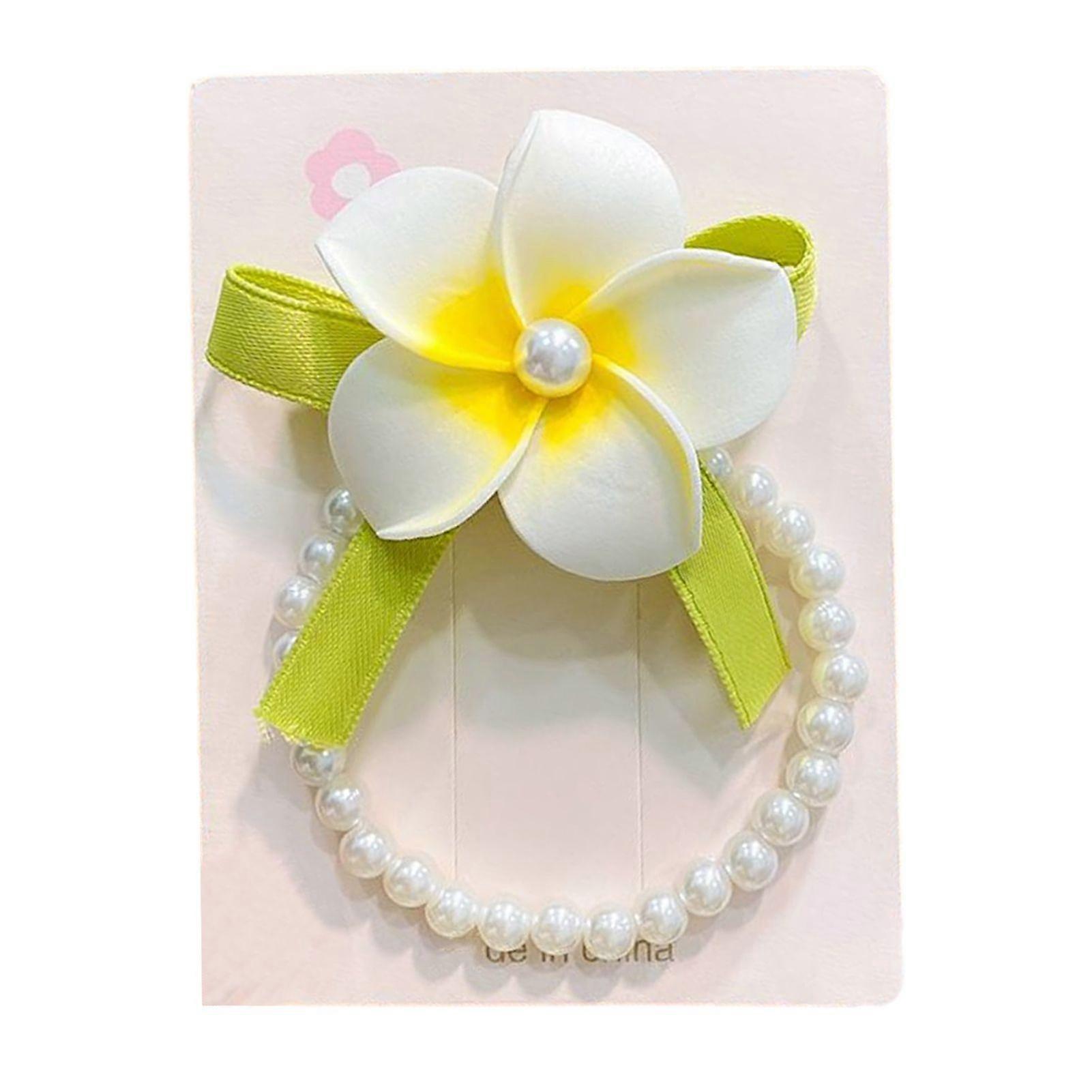 Flower Decor Hair Rope Faux Pearl Ribbon High Elastic Hair Tie Girl Bowknot Hair Band Hair Accessory