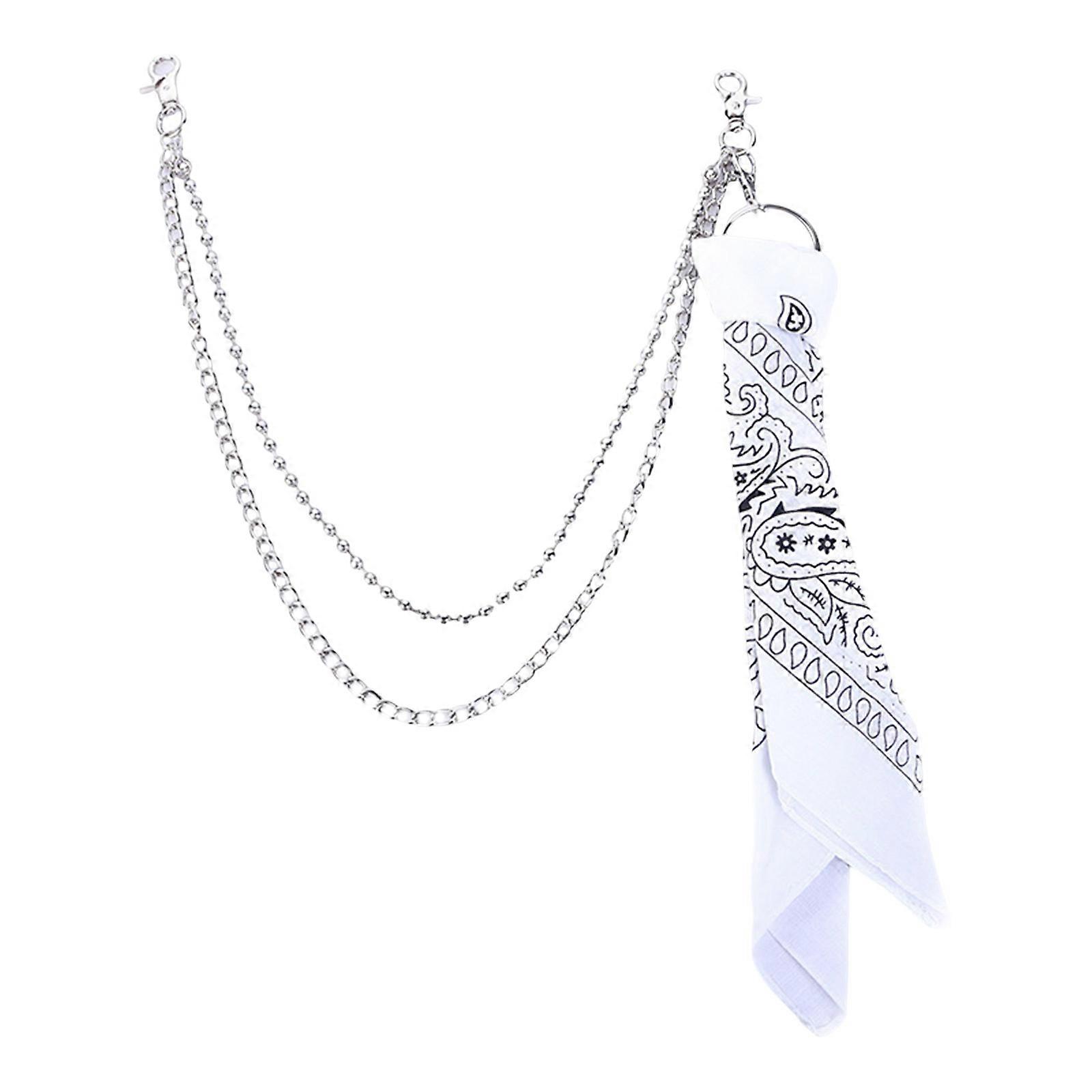 Flower Bandanas Pants Chain for Women Men Decorative Waist Chain Wallet Chain Double Layer Trousers Chain for Streetwear White