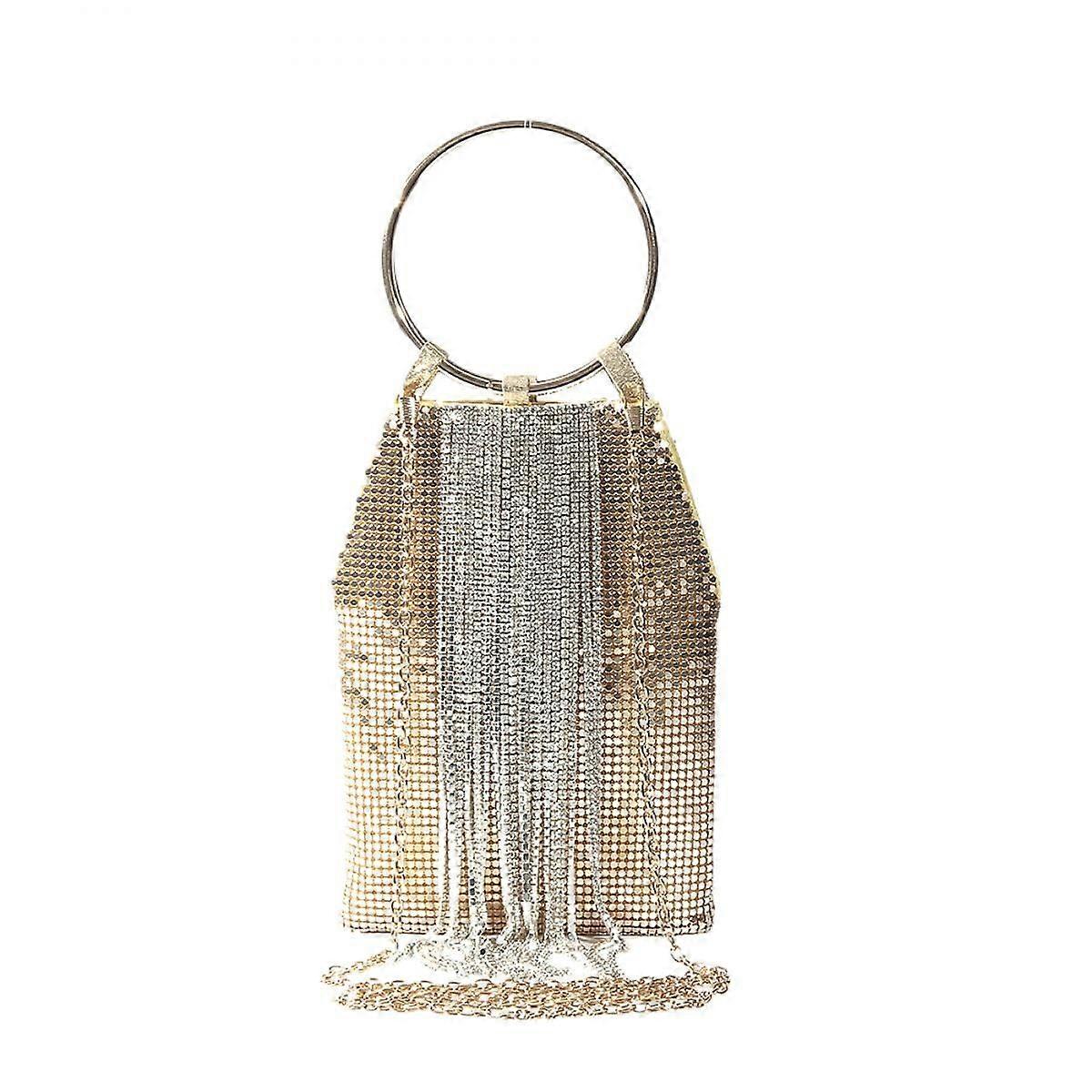 Wrist Handle Cocktail Party Wedding Evening Clutch Crystal Rhinestone Tassels Tote Handbag Metal Mesh Evening Bag