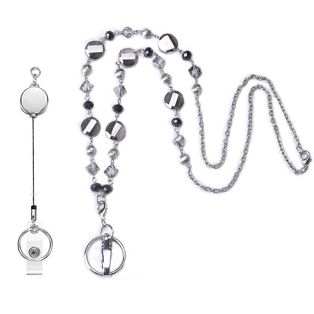 Simple Beaded Chain ID Badge Holder Leaves Retractable Name Badge Reel Lanyard Necklace Stainless Steel Jewelry Charms