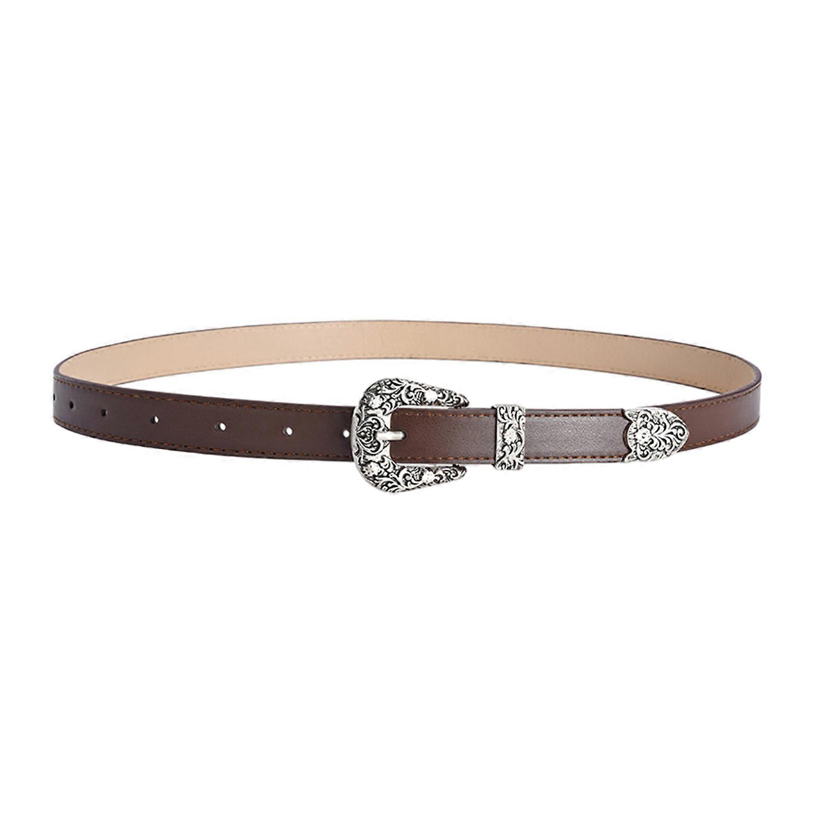Adult PU Waist Belt with Carved Floral Buckle Luxurious Personality PU Waist Belts for Women Coat Dress Adjustable coffee