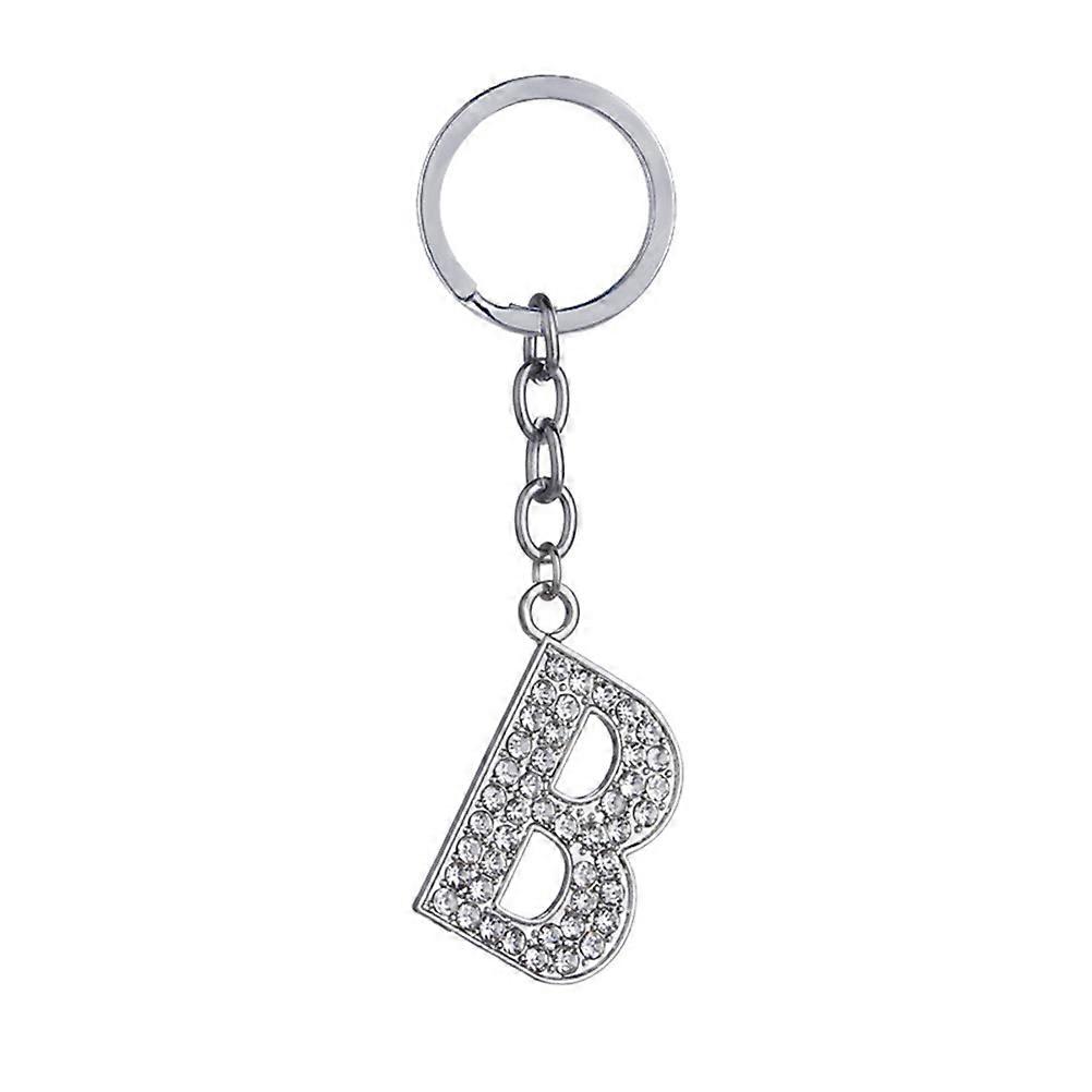 Simple Stylish Letter Key Chain Metal Rhinestones Key Ring Alphabet Keychain Bag Pendant Charm Birthday Gift (Letter B)