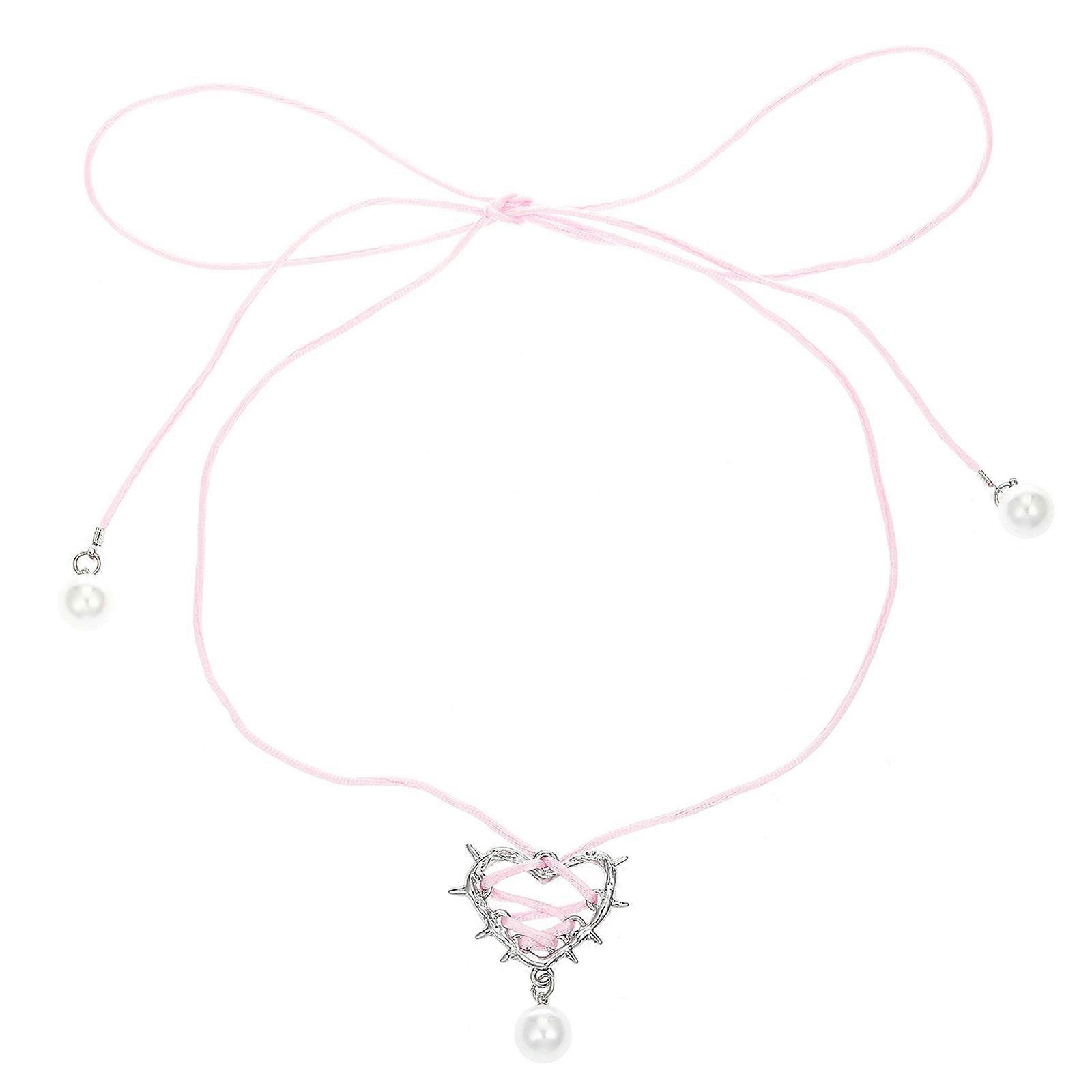 Simple Thorn Heart Pendant Necklace Fashion Collar Necklace Clavicle Chain Sweet Cool Lace up Choker Statement Jewelry