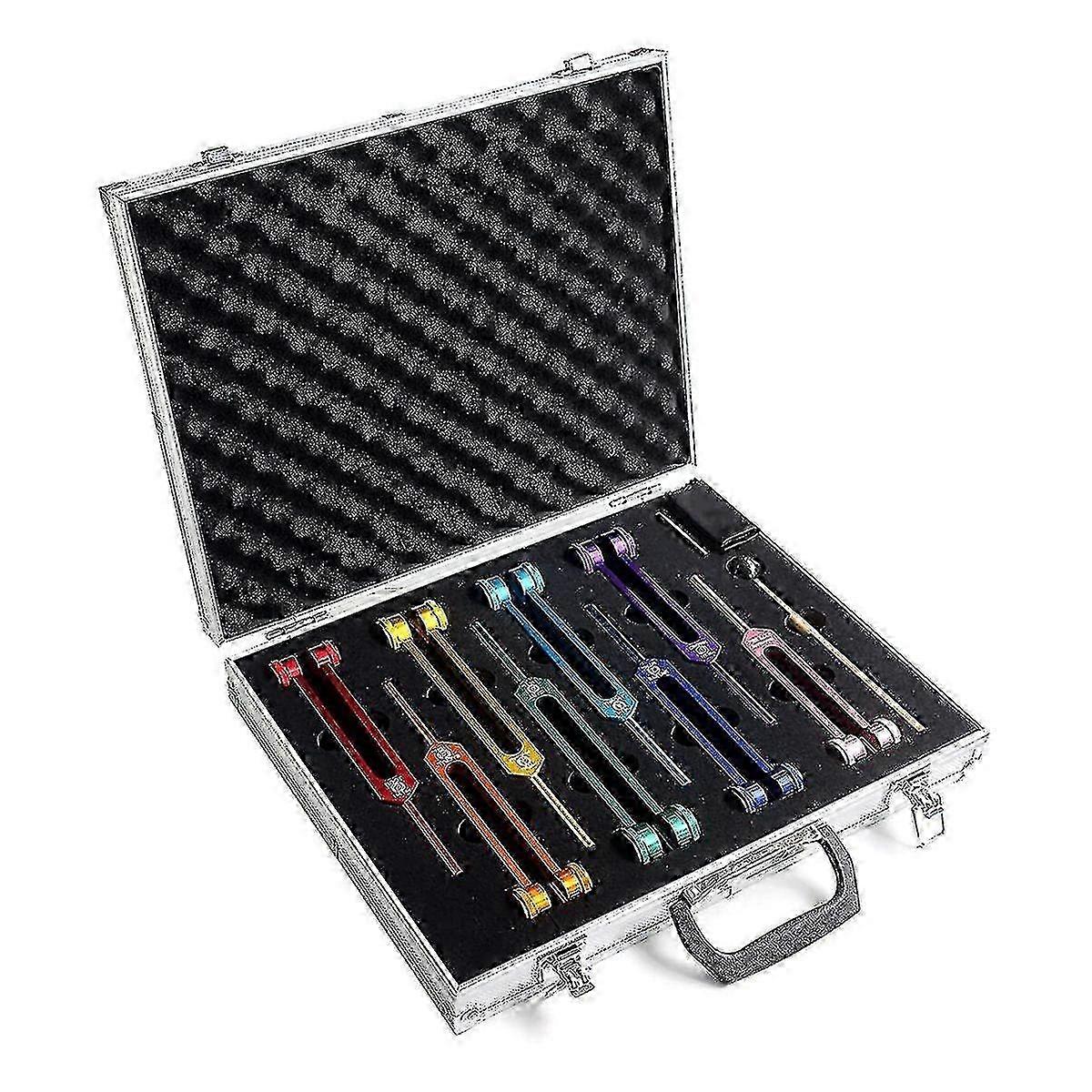 Chakra tuning fork set is made of high-quality aluminum alloy material with corrosion resistant quality, longer sound and precise frequency The Chakra tuning forks set can be widely used in sound healing, align 7 body chakras, cleanse the energy, Improve learning concentration, quick send negative emotions, improve insomnia, promote positive energy, massage, teach and meditation etc. tuning fork set included 8 tuning forks 126.22 Hz, 136.1 Hz, 141.27 Hz, 172.06 Hz, 194.18 Hz, 210.42 Hz, 221.23Hz, 272.2Hz. Rubber mallet, repair tool, cleaning cloth and exquisite aluminum box. Chakra tuning fork set with elegant appearance and considerate design, that is a great Valentine's Day, Father's Day, graduation, birthday, promotion, vacation etc. It would bring a clear and nice sound to all your families, even your cute pets. Material:aluminum alloy colour:As shown Package Contents: 1 x Gavel(color random and style random, cannot choose the specified color and style) 8 x tuning forks(The English pattern on the tuning fork is delivered with the factory) 1 x cleaning cloth 1 x Small wrench 1 x Aluminum box (appearance with the factory) Only the above package content, other products are not included. Note: Light reflection and different displays may cause the color of the item in the picture a little different from the real thing. The measurement allowed error is +/- 1-3cm.