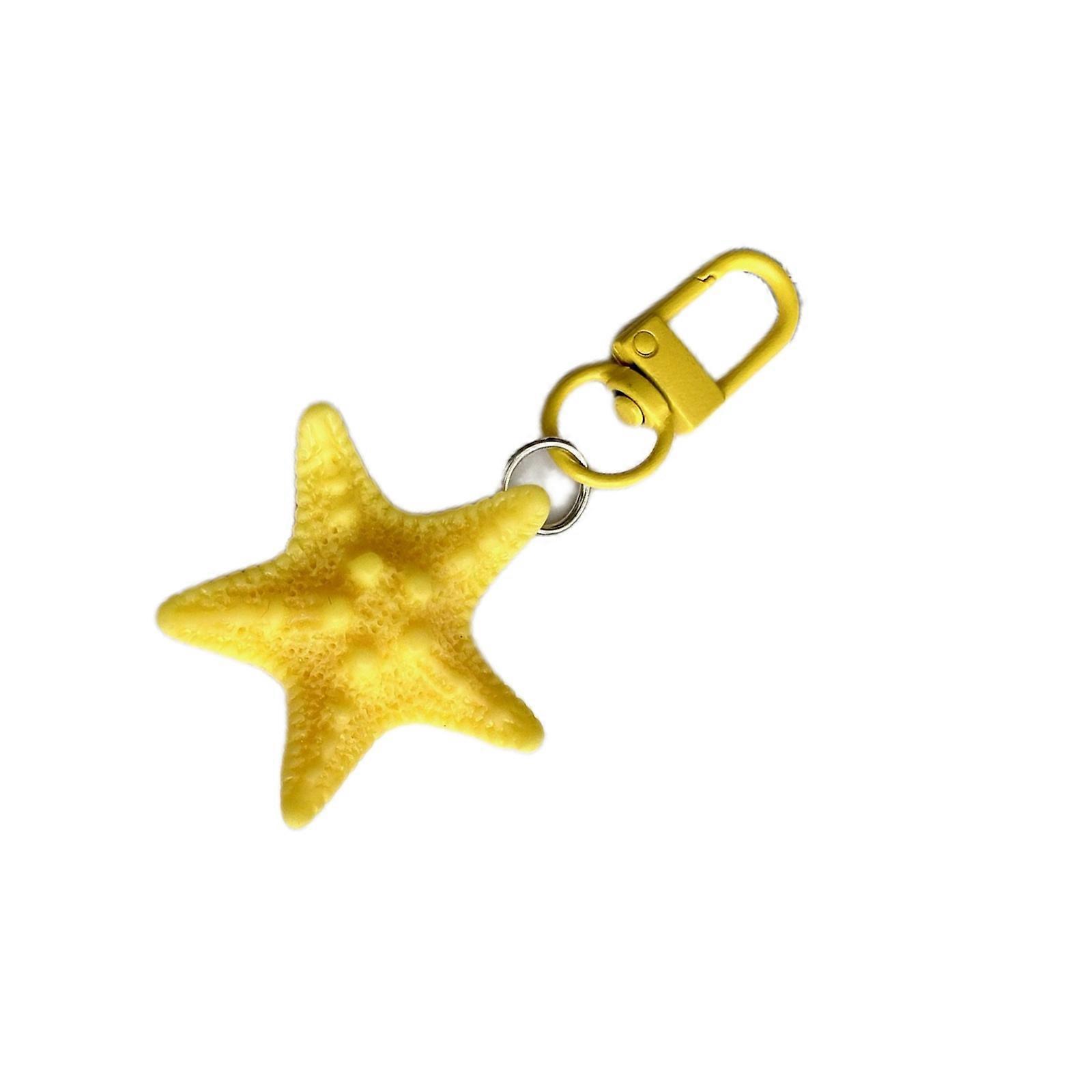 Colorful Sea Star Keychain Pendant Stylish Starfish Keyring Pentagrams Bag Charm Handmade Phones Chain Fashion Gift Yellow
