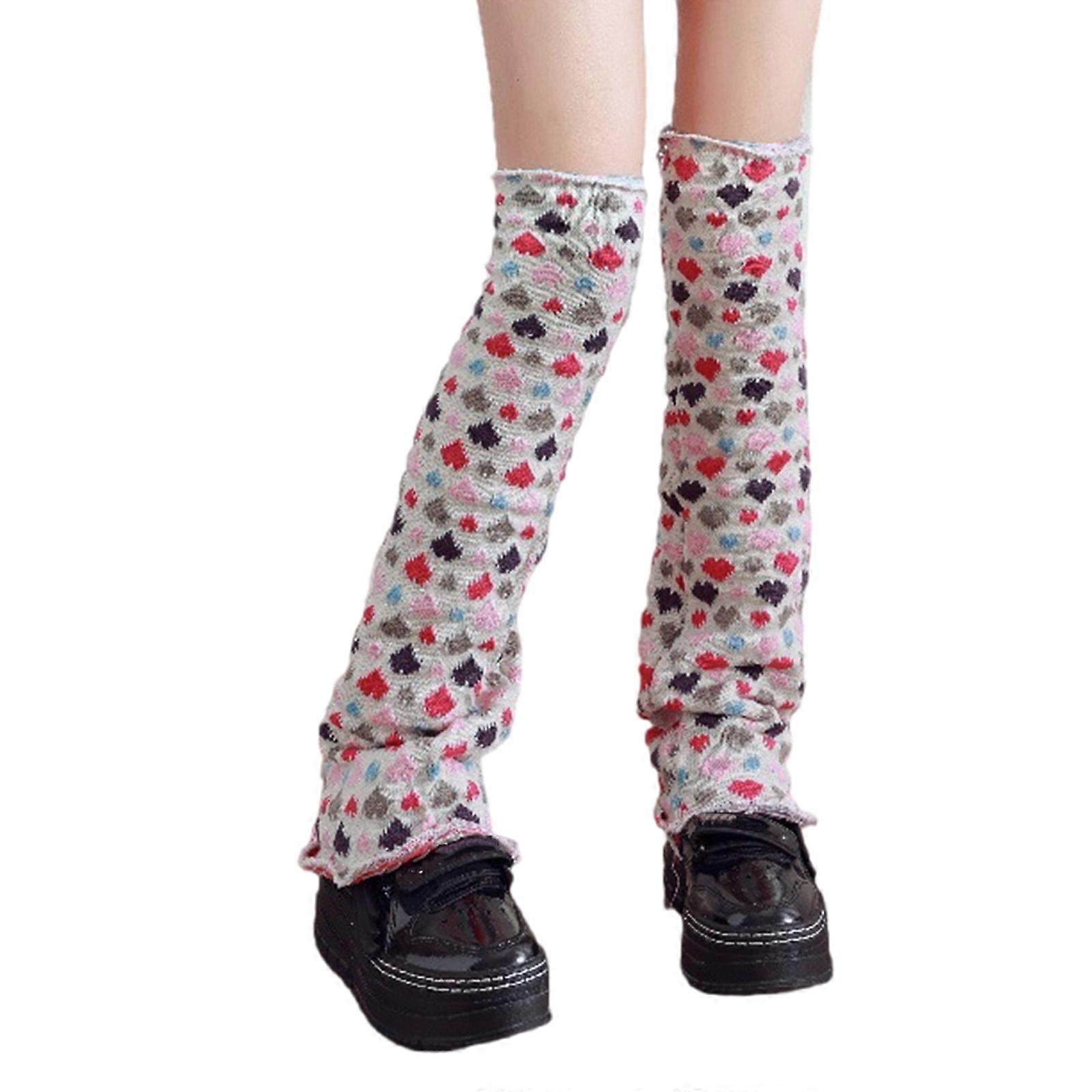 Colorful Heart Jacquard Knit Thigh High Leg Warmers Socks Fashionable Over Knee Flared Leg Covers for Women Stockings