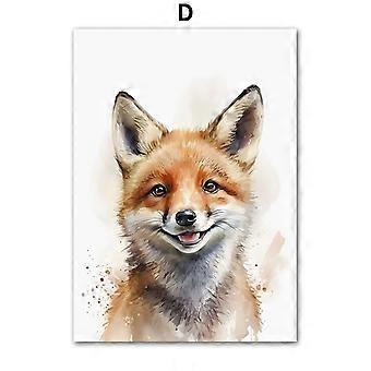 Watercolor animals Nursery Wall Art Mural Guinea Pig Lion Fox Bear Zebra Canvas Painting Poster Print Pictures Living Room Decor