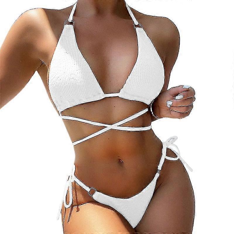 Solid Color Bikini Set Sexy Slim Swimwear Small Chest Cover Gathered Wrap Bathing Suit Low Waist Lacing Split Swimsuit Tw