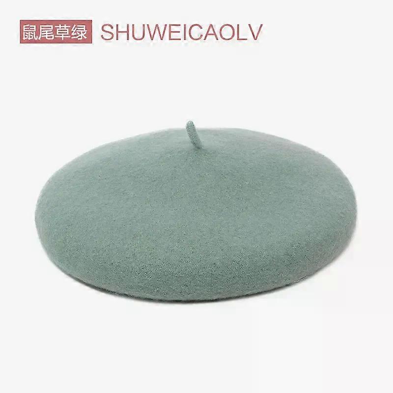 Green color Wool Beret Japanese hat Retro Painter Hat Bud Hat Autum Winter Vintage Caps Keep Warm Cute Casual Hat Women Beret
