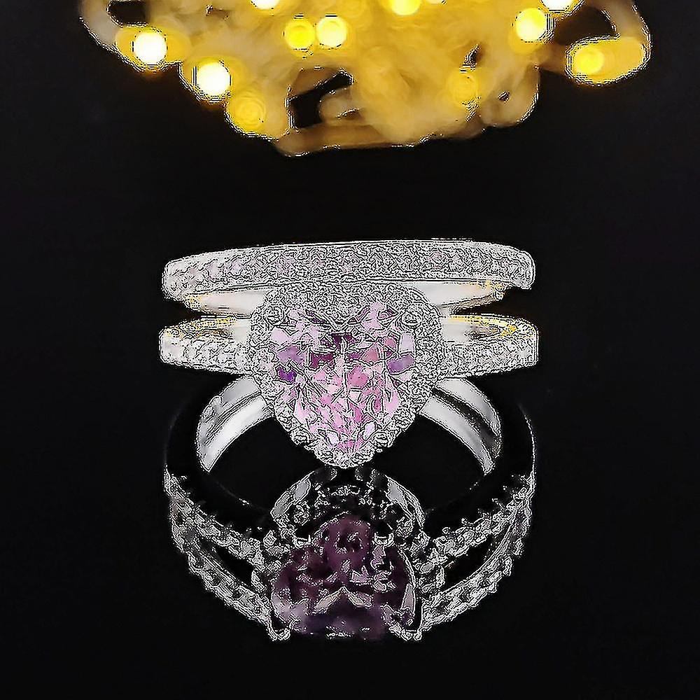 silver color bride heart cut cubic zircon wedding ring set for women bride engagement Jewelry Band eternity gift R6997