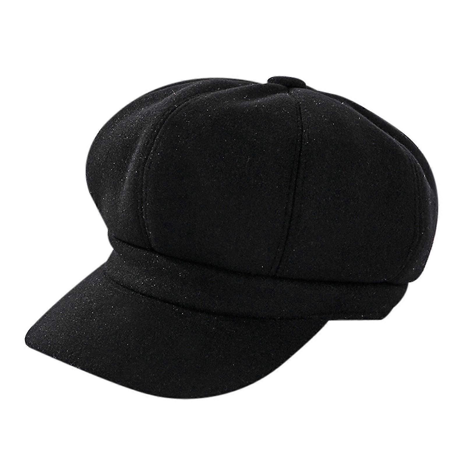 Solid Color Woolen Newsboy Cap Octagonal 8 Panel Hat Women Autumn Winter Thickened Warm Beret
