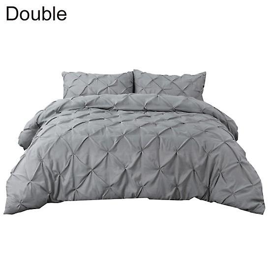 Soft Solid Color Pinch Pleat Duvet Cover Pillow Case Bedclothes Bedding Set