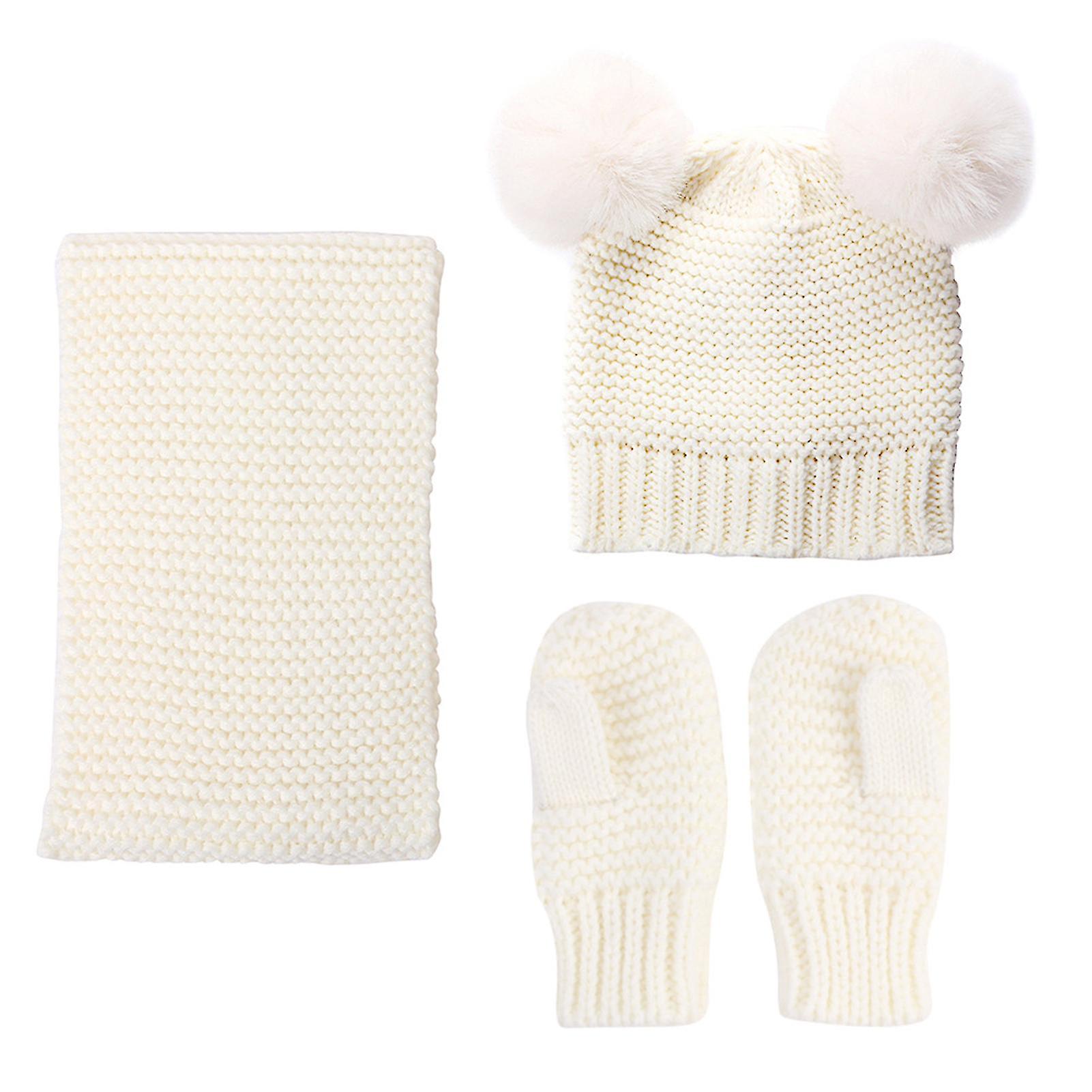 Solid Color Baby Children Kids Winter Autumn Warm Knitted Hat Scarf Gloves Set