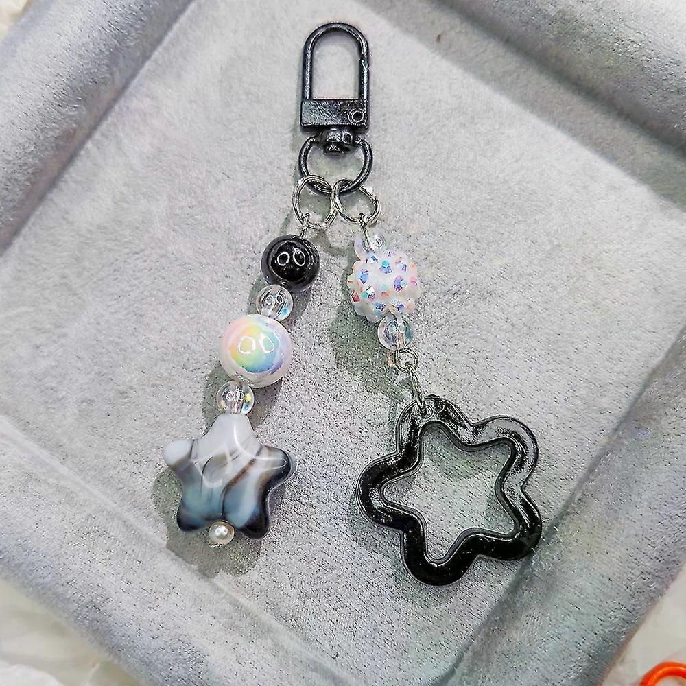 Gradient Color Star Beaded Keychain Imitation Pearl Acrylic Hollow Pentagram Keyring Girls Earphone Case Phone Decor Ornaments