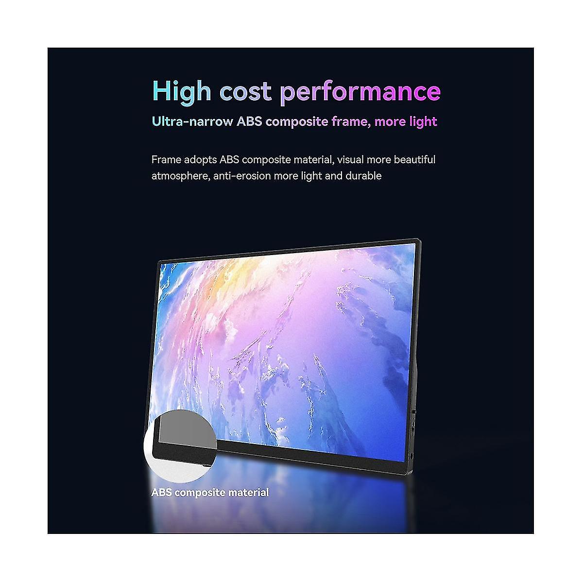 Dimensions: 14.0 inches; Model name: 140FCC aluminum alloy display screen Panel Type: 14inch Oxide TFT-LCD, LCD Module; Product resolution: 1920x1200 Display area: 301.594(W)x188.496(H) mm; Touch: not supported Surface treatment: , Hard coating (3H); Display Mode: HADS, Normally Black, Transmissive Brightness factory control maximum: 380 cd/m (Typ.); Contrast Ratio: 1500:1 (Typ.) (TM) Response time: 5ms; Ten touches: NA Pixel pitch: 0.15708(H) x 0.15708(V)[161PPI]; Screen ratio: 16:10 Viewing angle: 89/89/89/89 (Typ.) (10); Refresh frequency: 60Hz; Color gamut: 16.7M, 99% sRGB HDR image rendering: YES; FREE-SYNC: YES Mini -compatible: 2.0 input/audio and video transmission; USB Type C: external power supply / audio and video transmission; USB Type C: external power supply / audio and video transmission OTG interface-keyboard and mouse expansion dock; Headphone jack: 3.5mm headphone jack Key mode: traditional mechanical keys; Appearance material-color: CNC aluminum alloy sandblasting oxidation process-black Compatible with //SWITCH/PC host/TVBOX/digital camera: Mini to ; Laptop Tablet: Mini to Mini Some Type-C one-line direct connection; TYPE-C3.1 full-featured Android phone: For //Jmother/Black //, etc. One-line communication: mobile phone mode/PC mode; For : need adapter For : most models support display; Speaker: 1W x 2(8) Power Consumption: On: 10W; Standby0.5W, Off0.5Winch Plug Type:EU Plug,it applies to Indonesia, Germany, France, , Italy and so on Voltage: AC100-240V Color: Black Material: metal Package Contents: 1 x Portable monitor 1 x HD cable 1 x Type-C cable 1 Adapter 1 x Protective case Only the above package content, other products are not included. Note: Light reflection and different displays may cause the color of the item in the picture a little different from the real thing. The measurement allowed error is +/- 1-3cm.