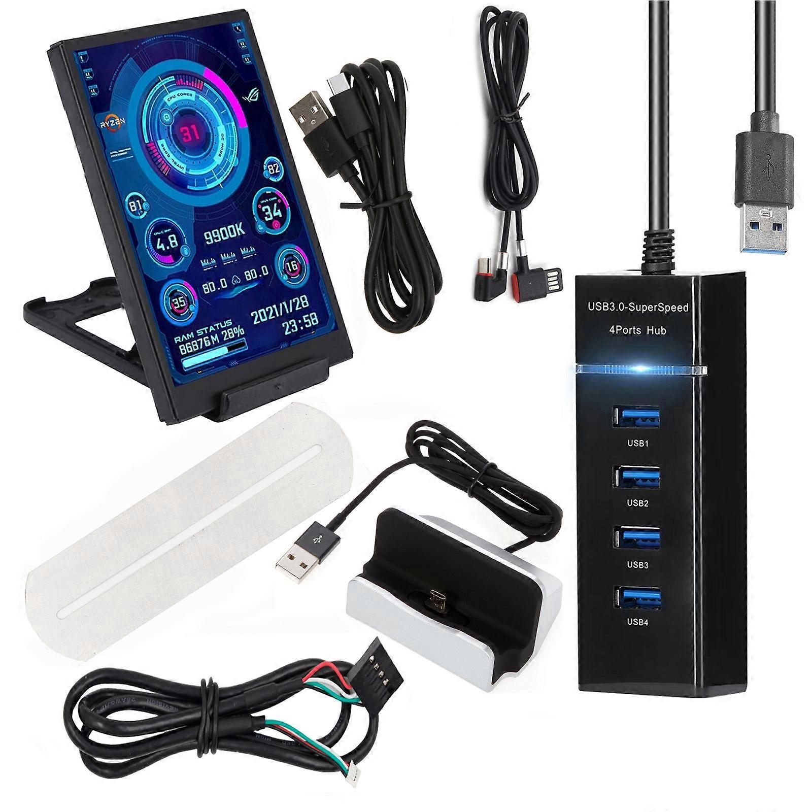 5inch TypeC Small Monitor TypeC Secondary Screen Computer Auxiliary Screen with Temperature Indicator, Multicolor