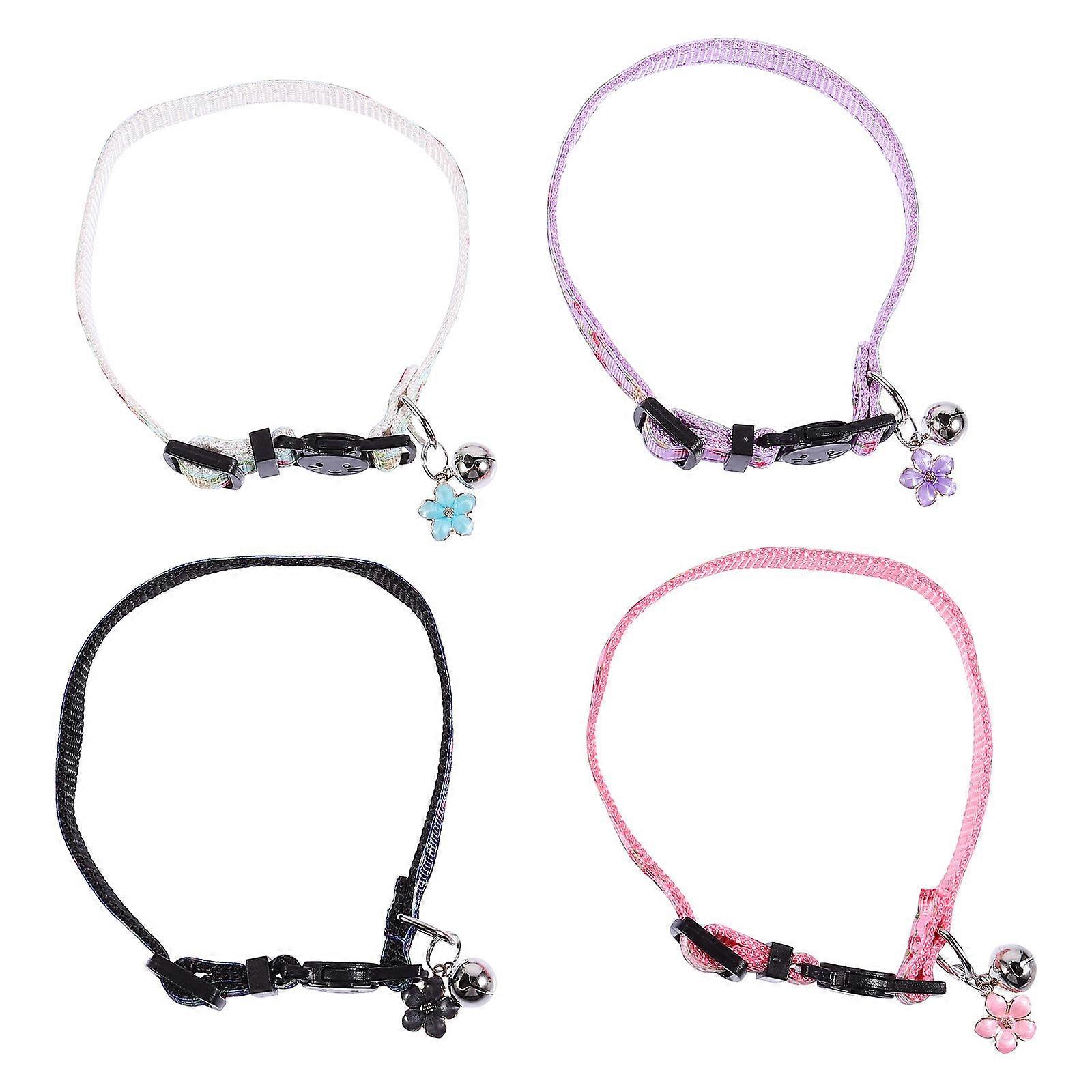 Floral Pet Cat Collar Adjustable Comfortable Nylon for Daily Wear Parties Weddings Assorted Colors 4pcs