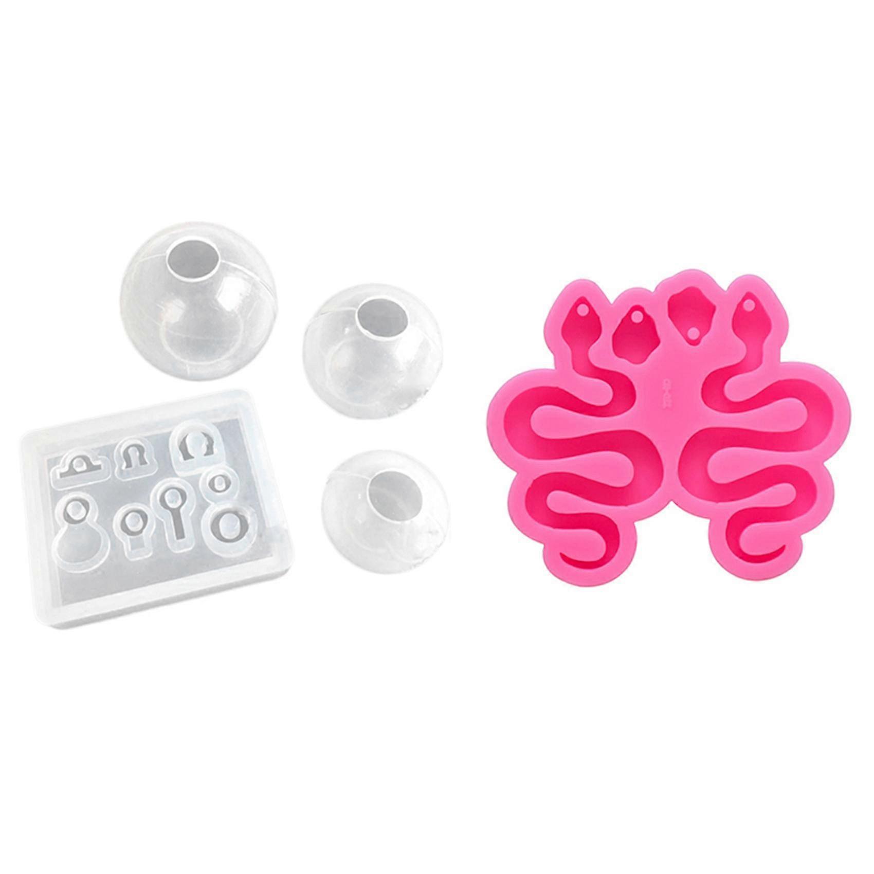 5PCS mold: 1 x Snake Shape Earring Mold & 4 x Transparent Ball Pendant Mold[STURDY & DURABLE]These resin casting molds are made of silicone by advanced techniques, flexible and durable, reusable and smooth. Stylish for all ages and outfits[WIDELY COMPATIBLE]epoxy resin casting molds are compatible with most of resin and casting materials such as epoxy resin, UV resin, cement clay, polyester resins, gum paste, soap, wax, candle, etc.[UNIQUE GIFT] resin earring molds would become many people's choices, it's a perfect gift for Birthday, Holidays, Christmas, Valentine's Day, Mother's Day, Also Bridesmaids' decorations.[EASY TO USE AND CLEAN]flexible silicone, just twist the mold can push out the pendant when material solidification; clean molds with soap water; storage them away from the sunshite and dustMaterial:siliconeTransparent Ball Pendant Mold: Brand new and high qualityColor: transparent whiteSnake Shape Earring Mold: [EASY TO DE-MOLD]You just need to twist the mold and release your creation after the resin is completely cured.Your piece comes out of the mold easily, no sticking, no tearing while the mold maintains its shape.colour:pinksize:8.2x6.8x0.9cmPackage Contents:1 x Snake Shape Earring Mold4 x Transparent Ball Pendant MoldOnly the above package content, other products are not included.Note: Light shooting and different displays may cause the color of the item in the picture a little different from the real thing. The measurement allowed error is +/- 1-3cm.