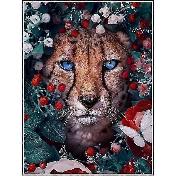 5D Diamond Painting, Full Drill Diamond Embroidery Kit, Cheetah Butterfly Flower