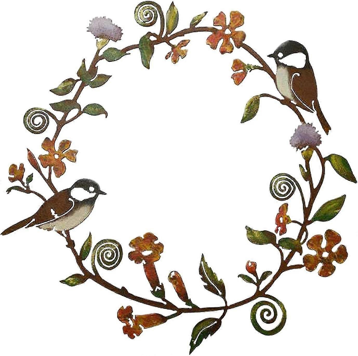 Metal Wreath Bird Wall Hanging Decor, Metal Chickadees And Flowers Wall Art, Hanging Wall Decorations For Window Front Door Living Room (d-4-)