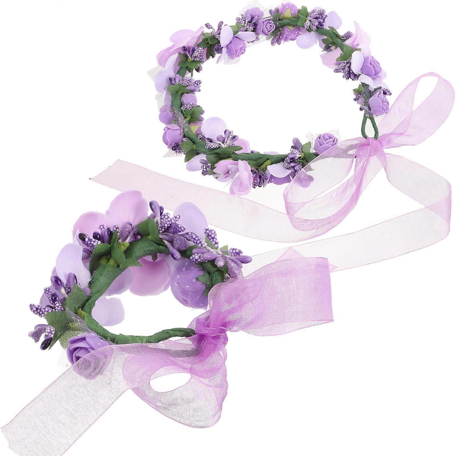Photo Prop Flower Wreath Headband Wristband For Women Wedding Costume Parties 1 Set