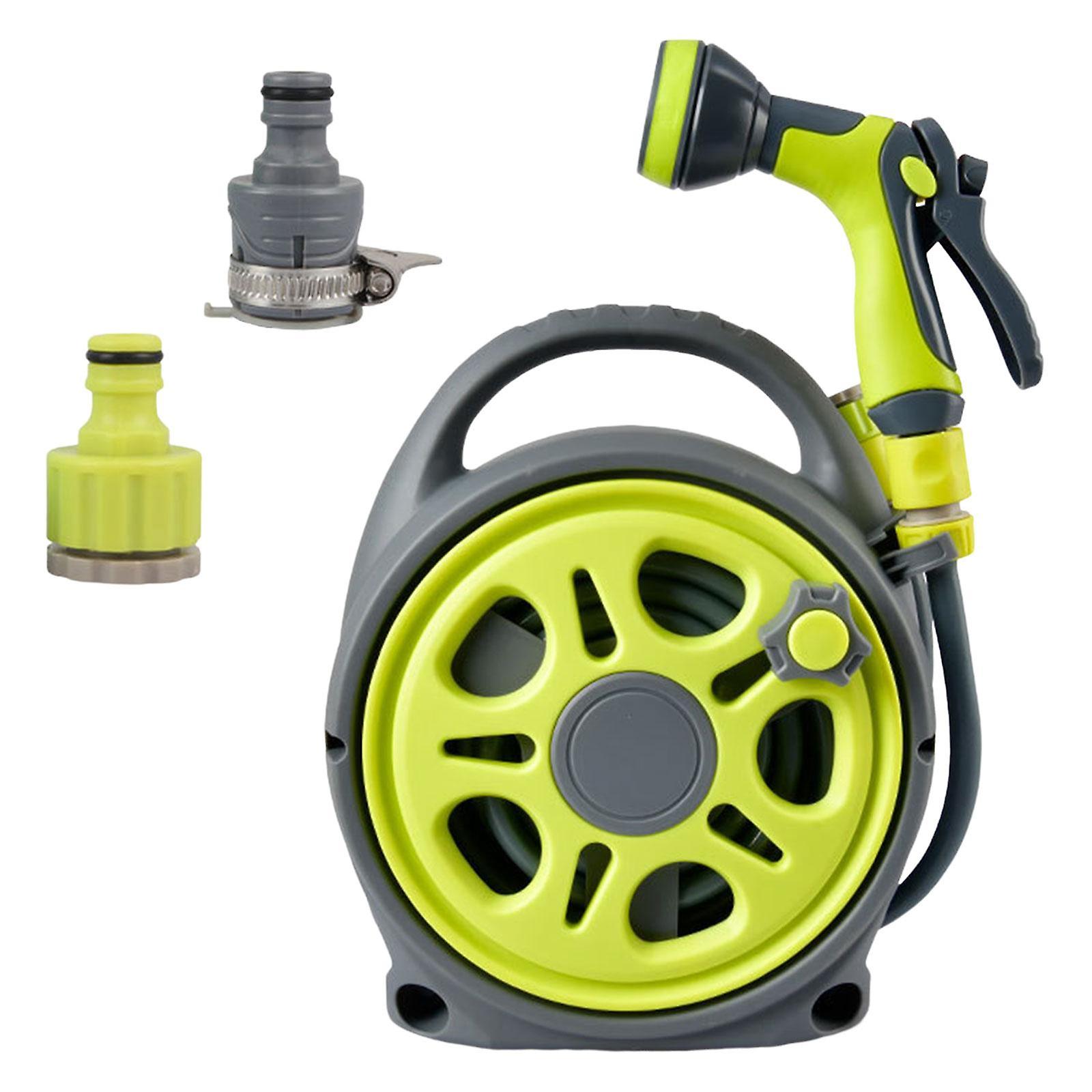 Portable Garden Hose Reel 7 Function Nozzle 16M for Showering Pets Green