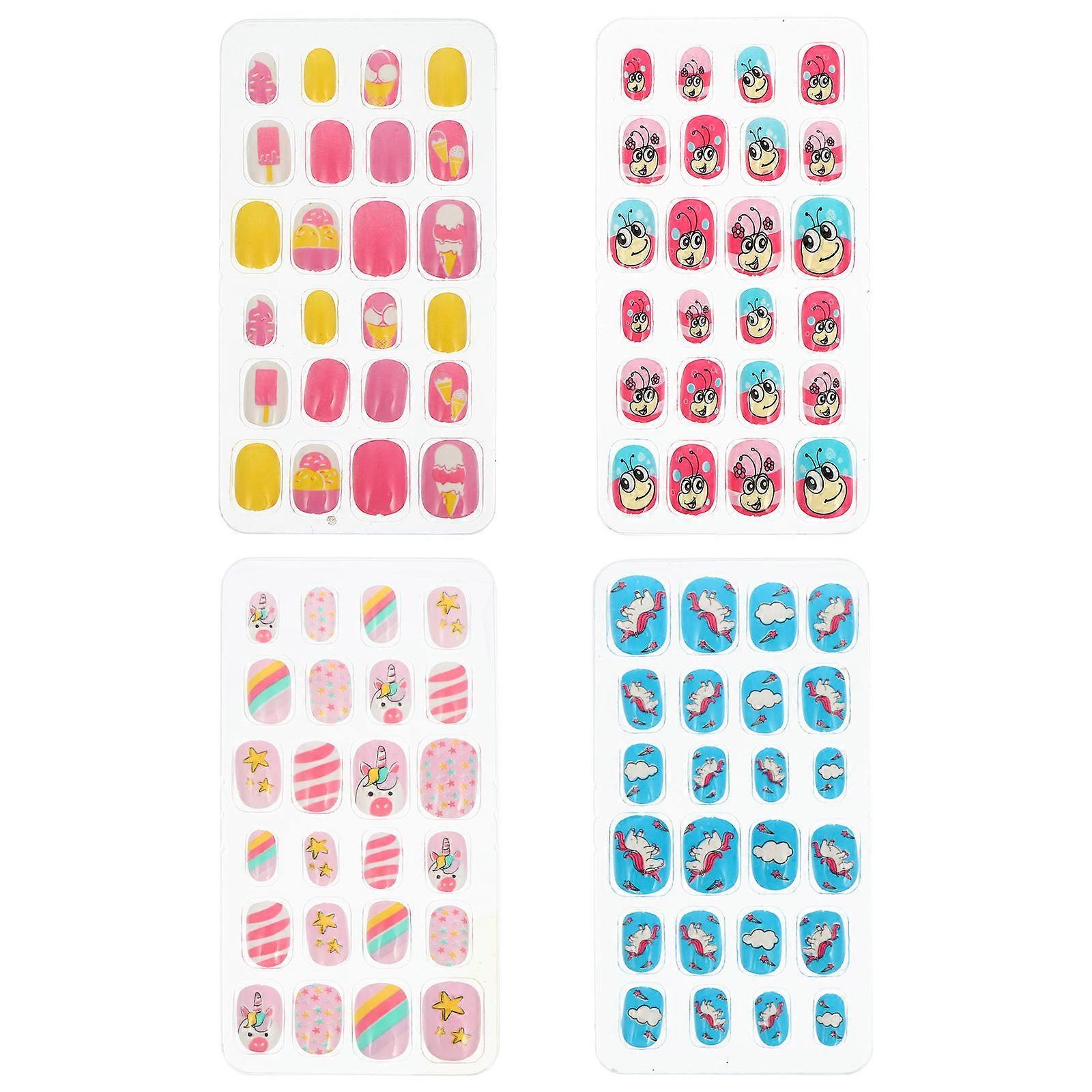 False Nail Kids Short Square Glitter Full Fake Nails for Nail Art 96Pcs