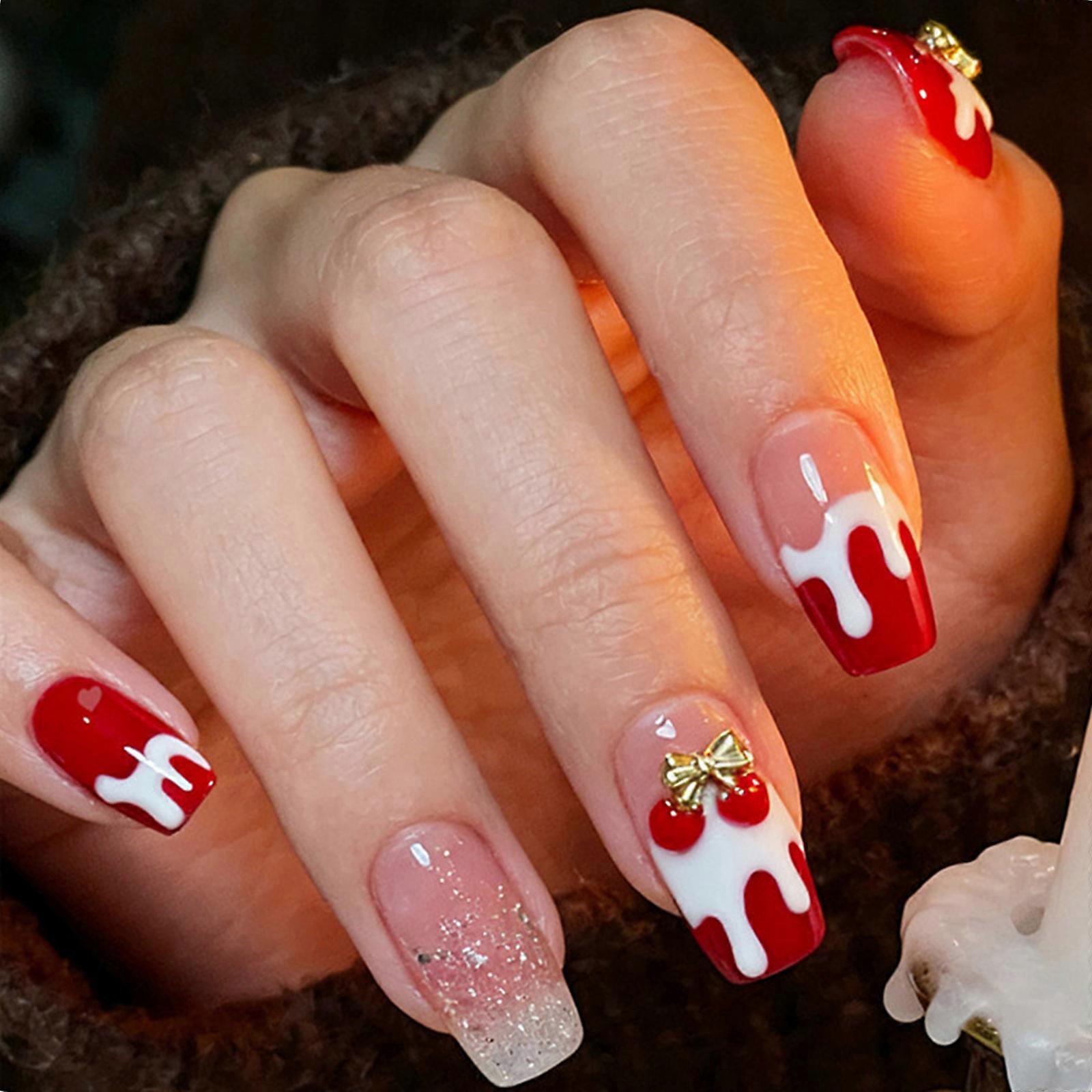 Christmas Press On Nail Classical Red White Design Durability ABS Manicure Nail Suitable For Fesitival Nail Art Multicolor