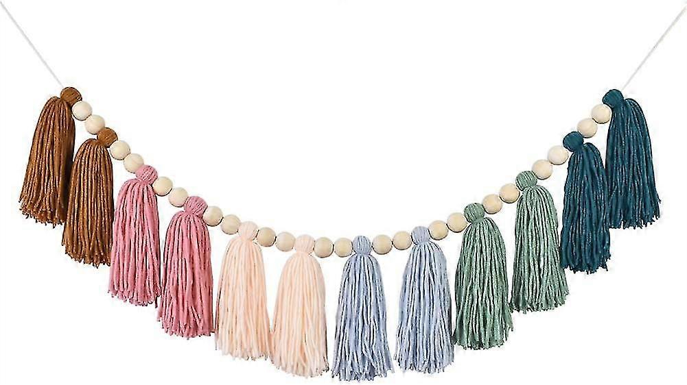 Tassel Garland with Wood Bead Earth Toned Rainbow Garland for Classroom Nursery Gift