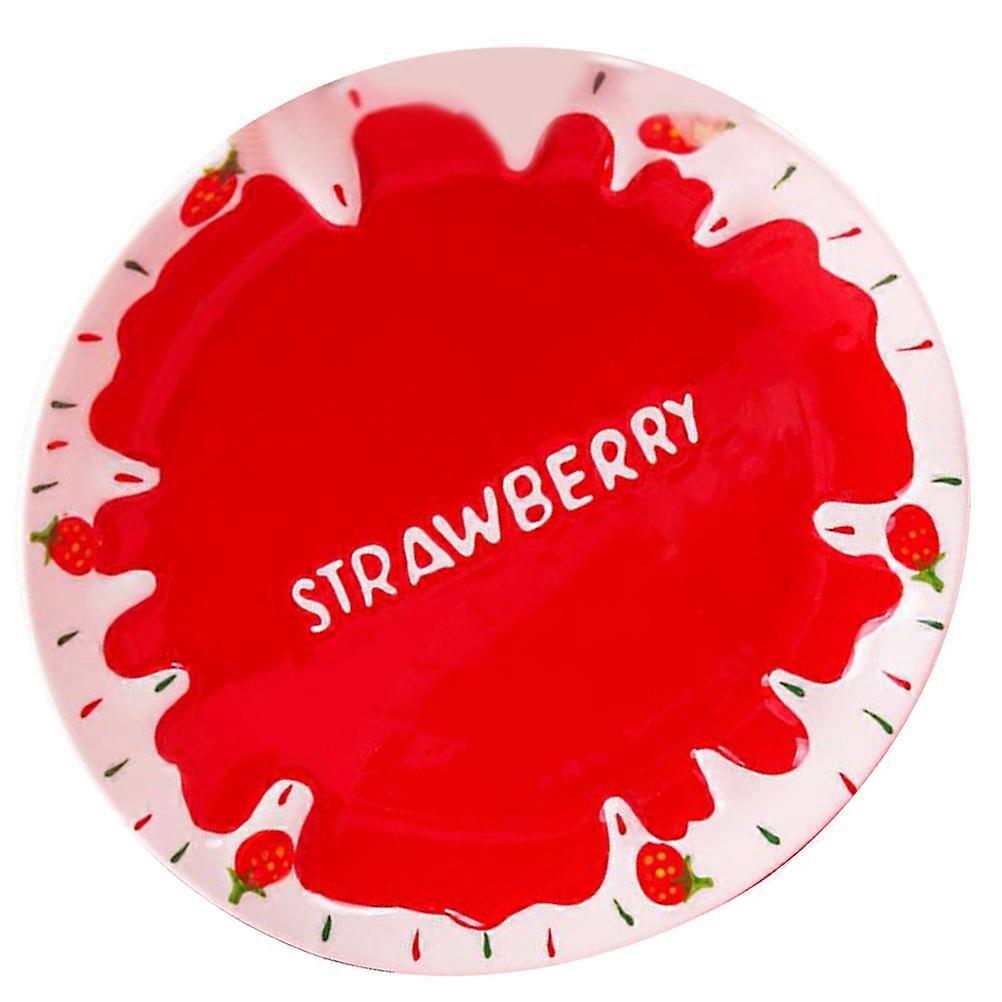 Strawberry Decor Plates Ceramic Salad Plate Round Cartoon Dessert Plate for Birthday Parties 8.5X8.5X0.8in 1Pack