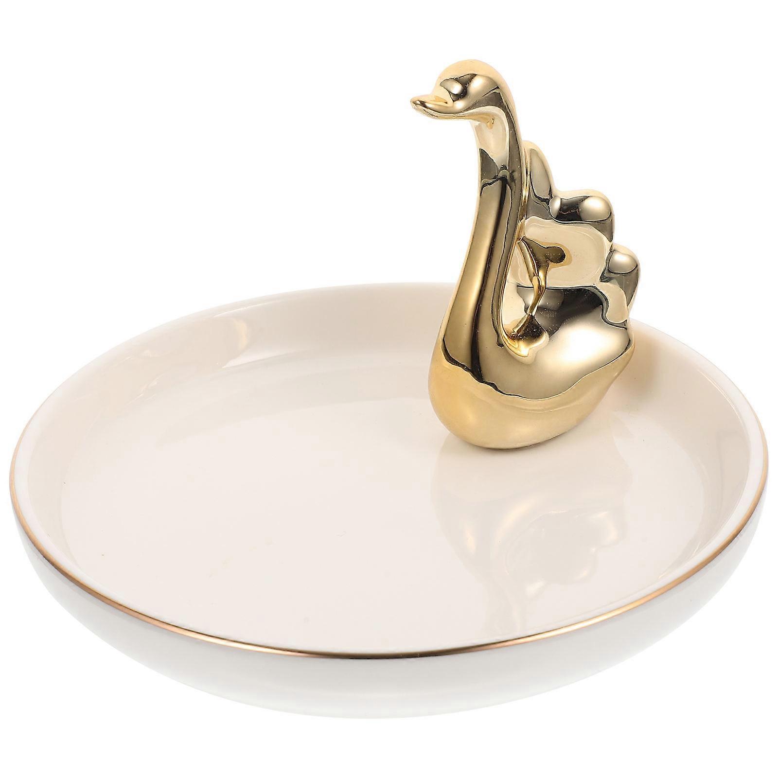 Ceramic and Metal Jewelry Storage Plate for Home Assorted Color Elegant Design Smooth Edges 7 Inch