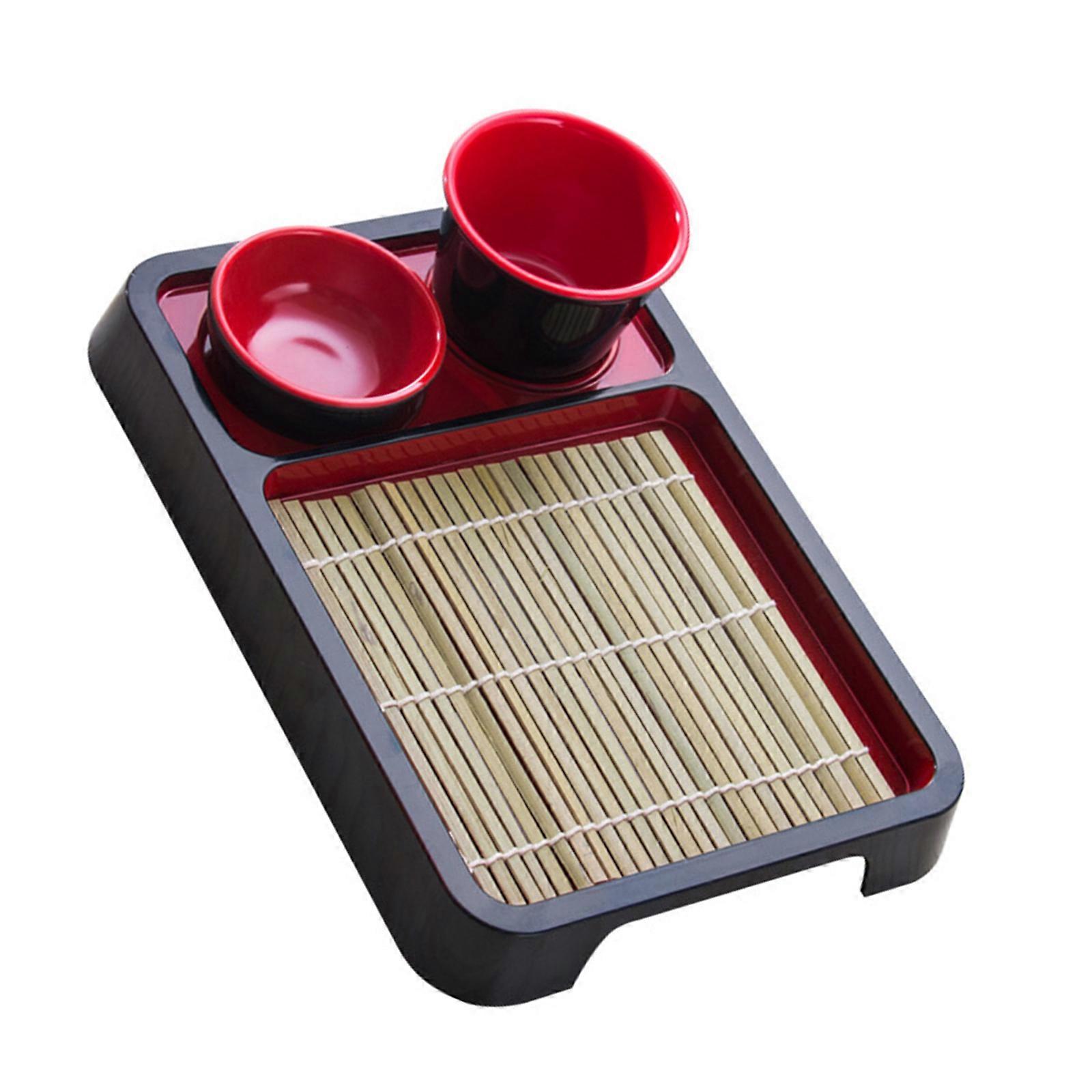 Multipurpose Soba Noodles Plate Sashimi Platter with Bamboos Mat Food Snacks Dishes Serving Platters Easy to Clean Multicolor
