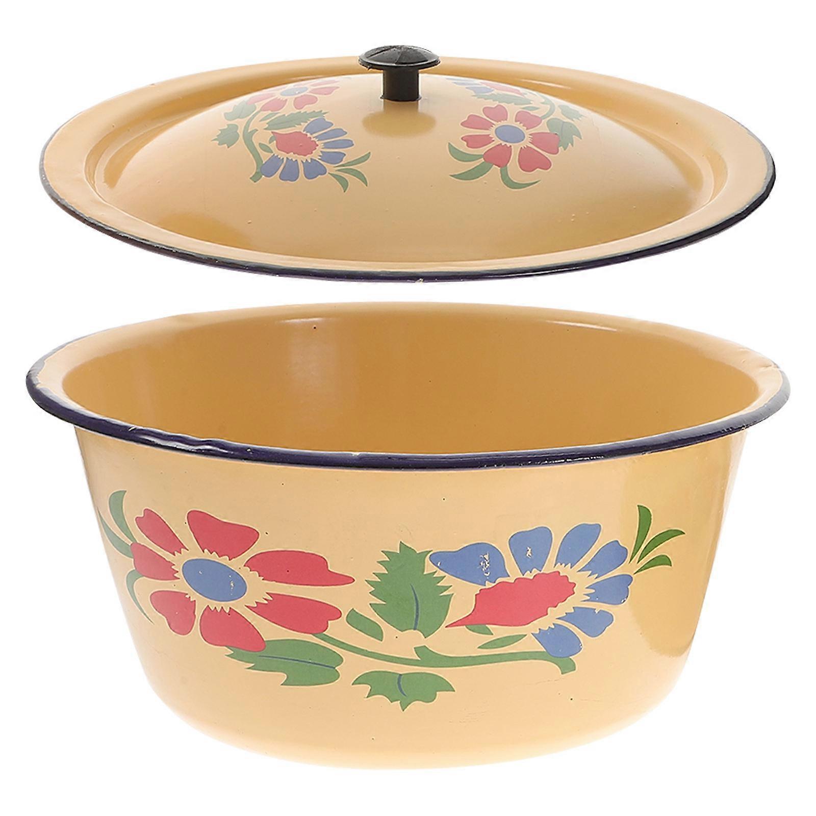 Enamel Dish Retro Enamel Basin Chinese Style Storage Holder Home Use 23x23cm Washing 1Pack