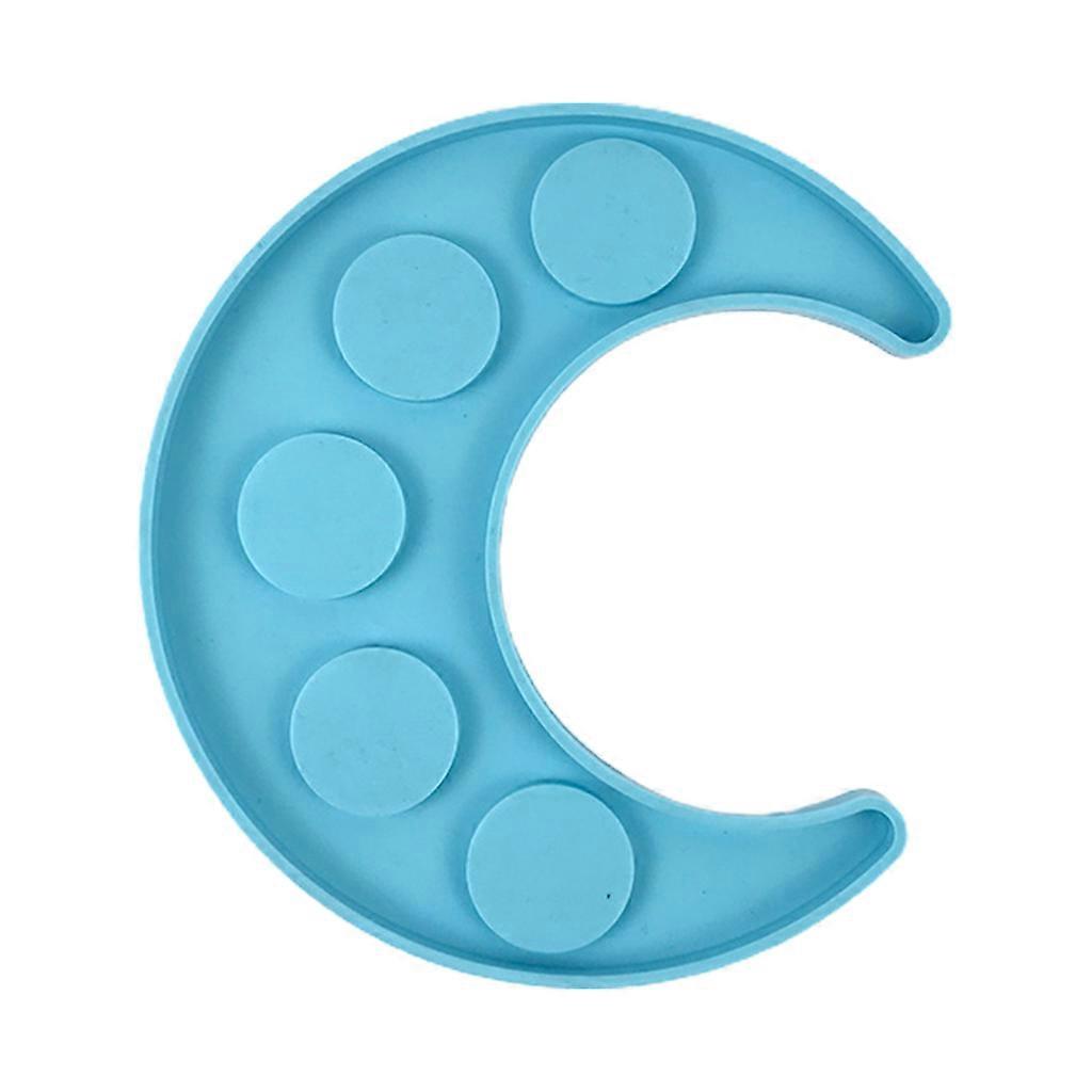 Essential Oil Tray Plate Epoxy Resin Mold 5-hole Moon Candlestick Silicone Mould Blue