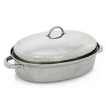 42cm Stainless Steel Oval Roaster Roasting Pan Dish With Domed Lid Rack Pro 2025