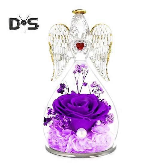 Angel Rose Figurines for Women Eternal Real Roses in Glass Dome Preserved Flower Glass Angel Romantic Gift for Mother's Day Christmas Birthday