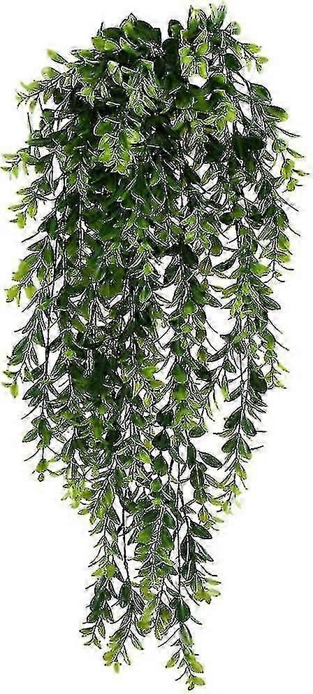 Long Green Plastic Hanging Artificial Plants For Indoor Or Outdoor Home Office Balcony Garden Decor - Pack Of 2