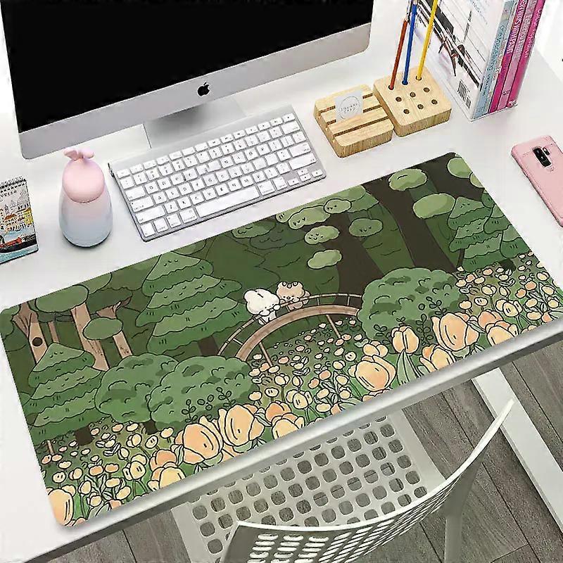 Green Plant Large Gaming Mousepad XXL Gamer Mouse Pad Size For Office Long Table Mat Kawaii Desk For Teen Girls For Bedroom