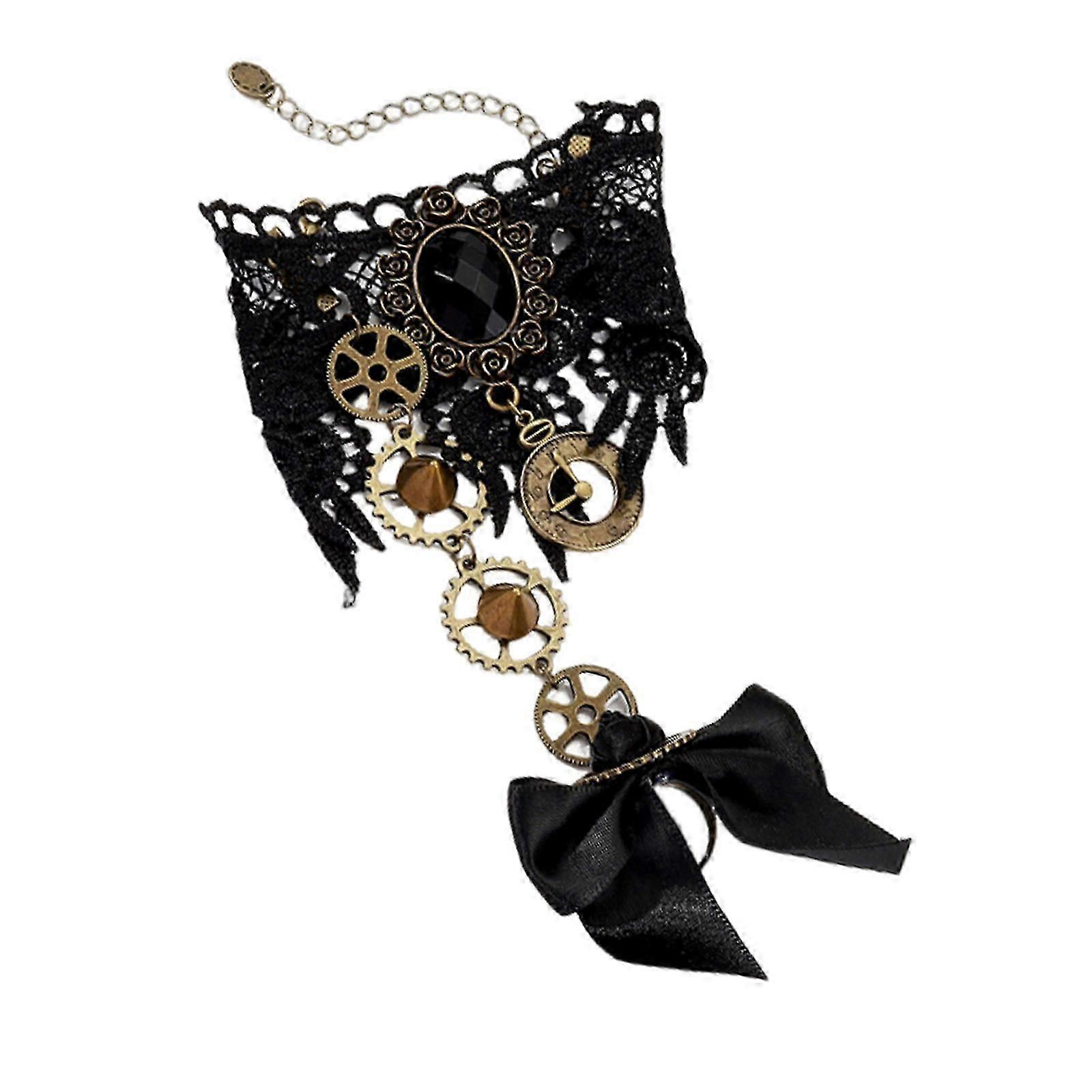 Gothic Bracelets Collar Black Chocker Necklace Chain Embroidered Lace Hand Beading Wristband Crystal for Masquerades necklace