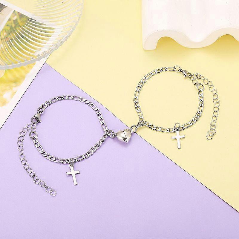 Bracelets For Women Men Fashion Couple Cuff Jewelry Vintage Silver Color Chains Heart Magnet Bracelets Korea Trendy Pulsera