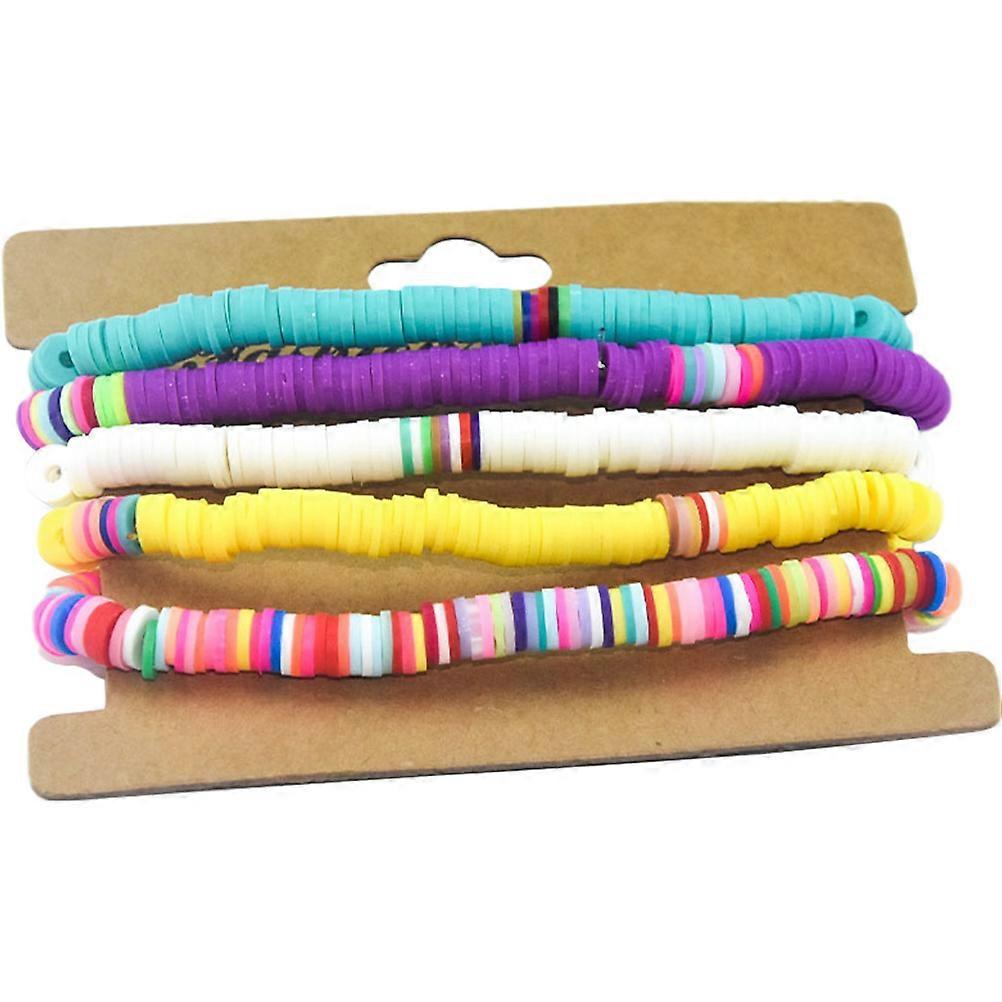 Are you in search of some pretty wrist decors to give to yourself or as an impressive gift choice to your friends or family? This bracelet can surely satisfy your needs. The design is unique and personalized, can make you become charming and adorable among the crowd. Using polymer clay materials, very durable for long time to use. Features -Color:yellow, white, purple, blue, colorful. -Material:Polymer clay. -Size:19.00X19.00X0.60cm/7.47X7.47X0.24in. - Our bracelet is made from safe polymer clay materials, has gentle touching feeling, can be used for long time. - A nice wrist decoration for your wedding, Valentine, summer beach party, birthday, engagement, anniversary and more occasions. - Light weight, easy to wear, elastic design, perfect for most people wrist, can have a gentle wearing feeling. - Have a strong bohemian style, with elegant dress, you will become beautiful in the beach scenery. - A good option to match with your different outfit styles, also can share with your women family or friends. Package list: 5 x bracelets