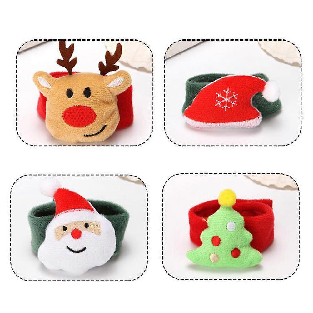 Festive Slap Wristbands For Kids And Adults With Santa Claus Elk Xmas Tree Hat Motifs Ideal For Holiday Celebrations 4Pcs