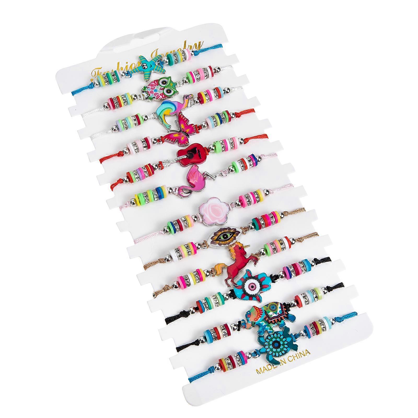 Adjustable Animal Charm Polymer Clay Bracelets for Stackable Beach Jewelry, Woven Wrist Accessories for Summer Fun & Everyday Wear (12pcs)