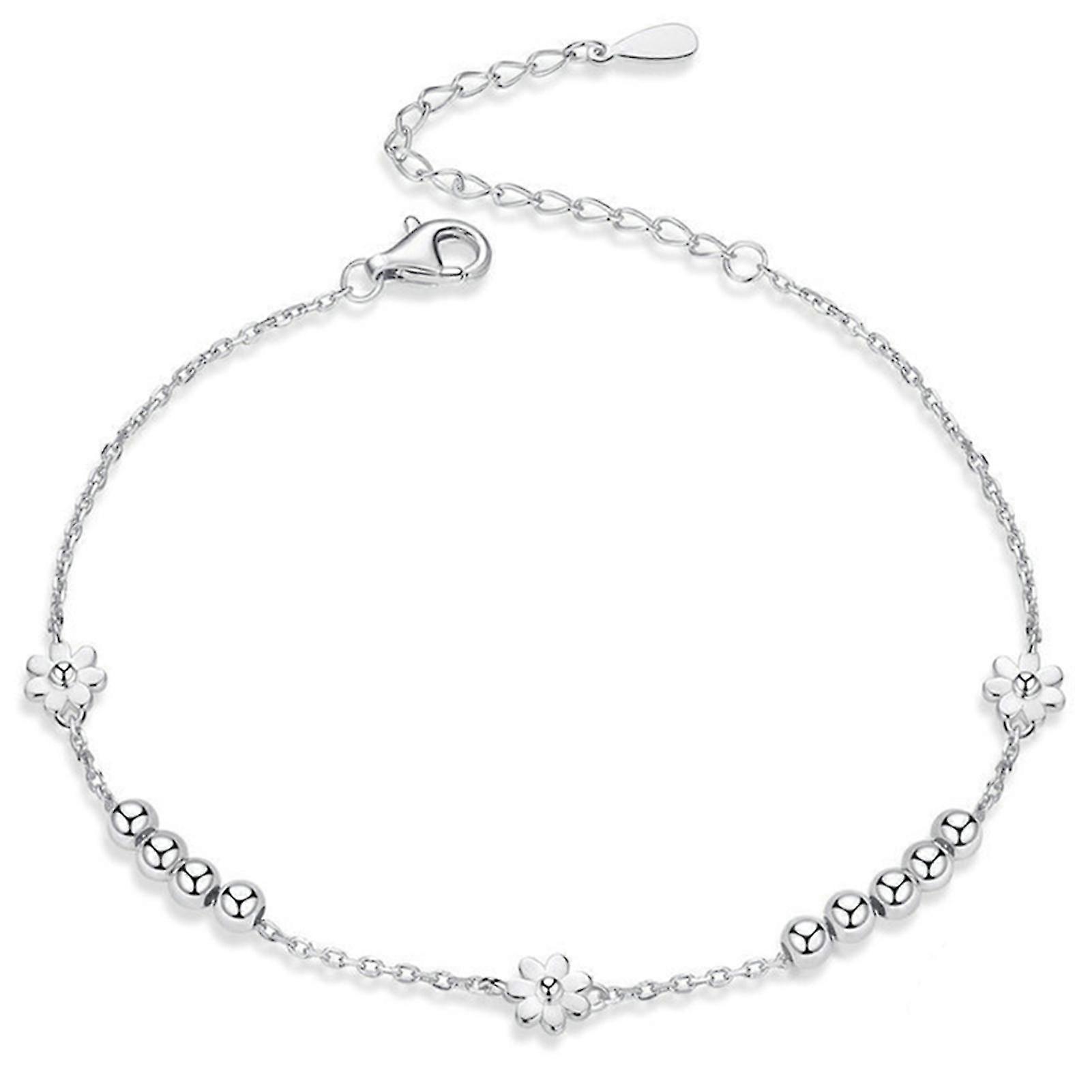 Silver Bracelets Flower Beaded Hand Chain For Women One Size Adjustable Jewelry Gift For