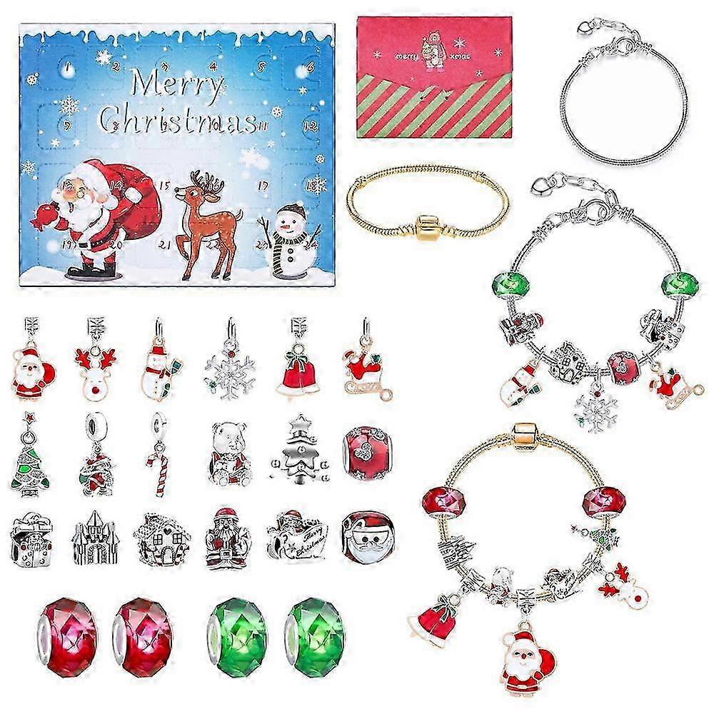2025 Christmas Advent Calendar Bracelets Girls Advent Calendar Charm Bracelet Making Kit For Kids Fashion Jewelry Set Pendant Jewelry
