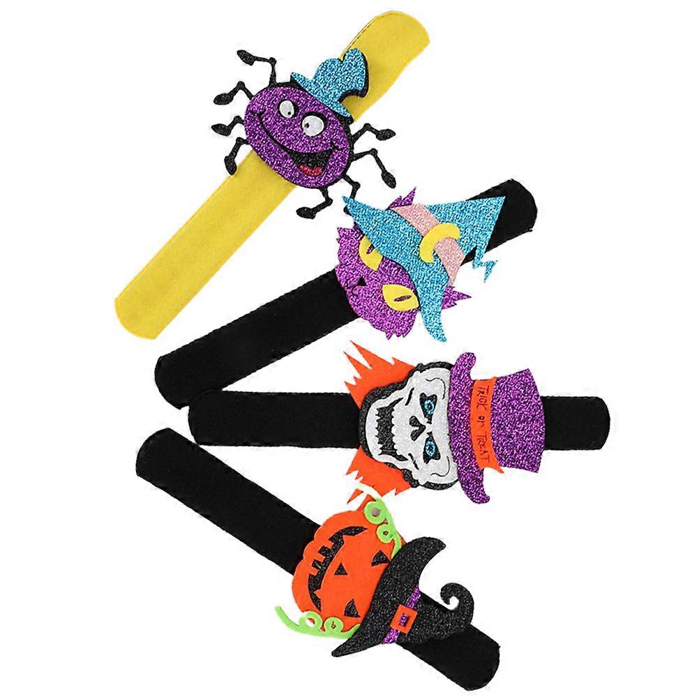 This item is Halloween slap bracelet for use. It is designed with patterns and bright color, which is creative and decorative. Perfect for parties, Halloween party, carnival night, festivals and carnivals, etc, also can be a good present. Features -Color:Assorted Color -Material:Felt, iron -Size:22.00X11.00X3.00cm/8.65X4.32X1.18in - Note: Random Style - The bracelet is made from safe material, which is durable and practical for lasting wearing. - These slap bracelet are suitable for party, carnivals, stage performances and more occasions. - The cool and realistic appearance can nicely attract people's attention, give them surprise. - Light weight, can be kept and applied for a long time, providing you with a comfortable wearing experience. - The wrist decoration will make your kids stand out from the party, become the of the crowd. Package list: 12 x Halloween Slap Bracelets