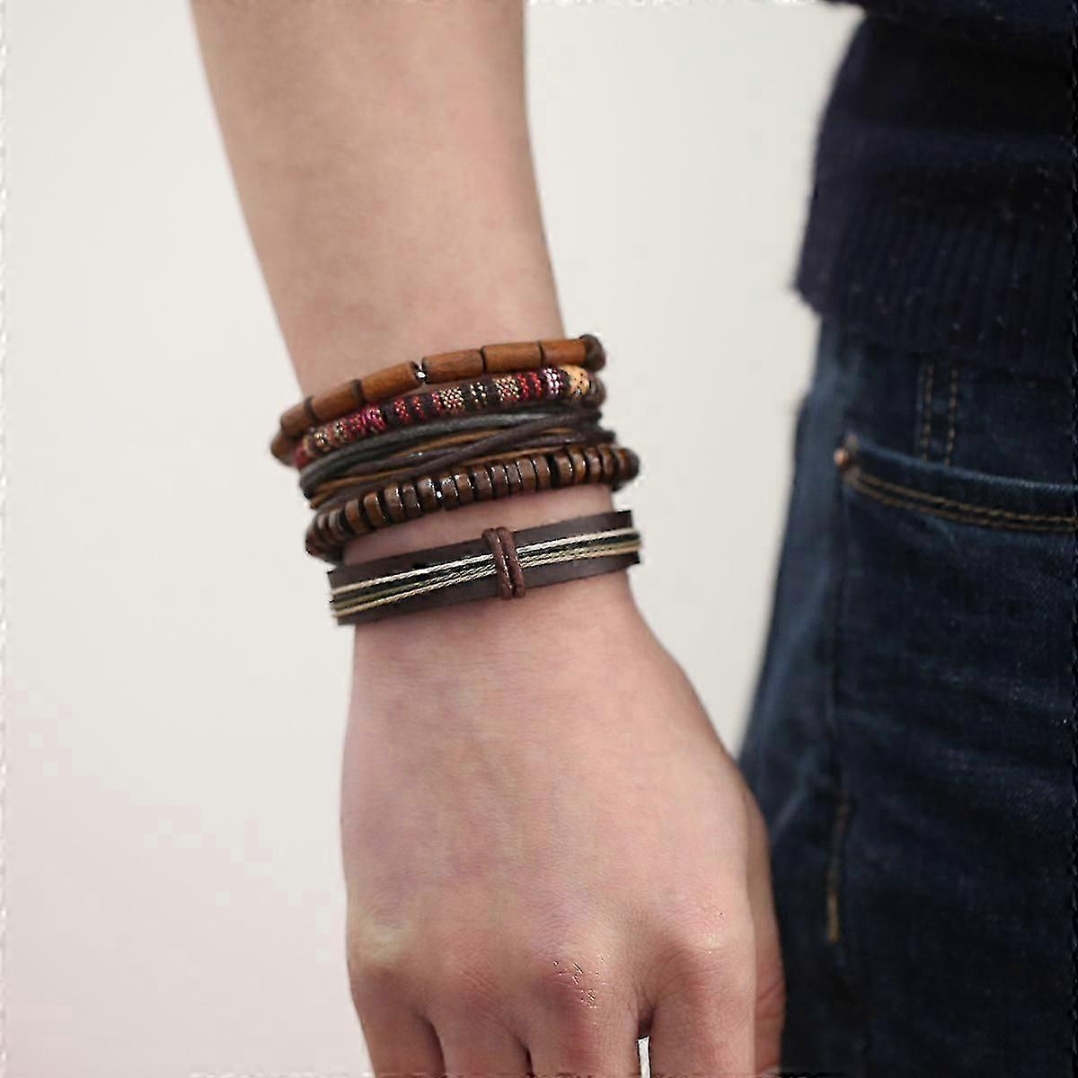 Adjustable Braided Cowhide Bracelets for Men - Handmade Multi-Strand Leather Wristbands