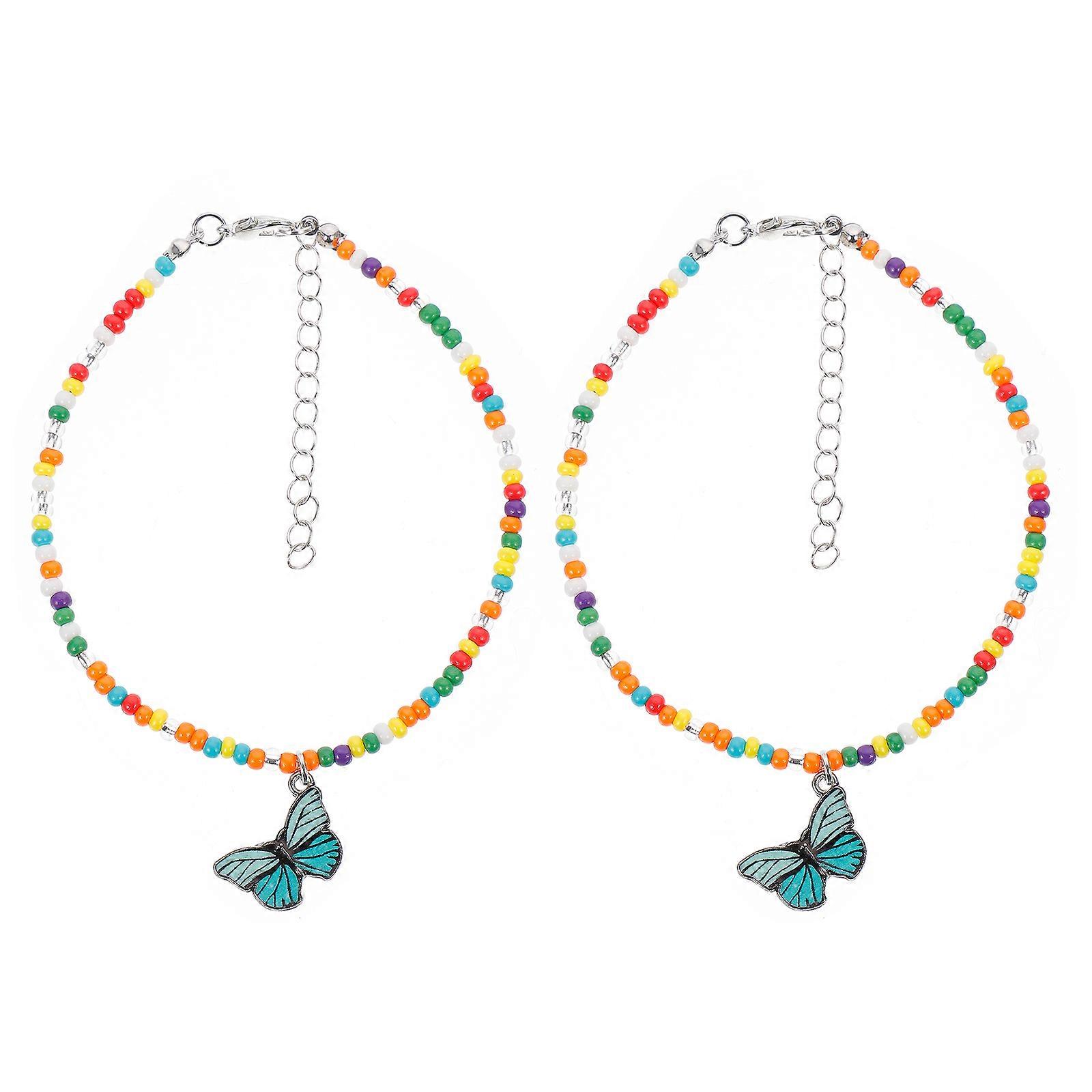 Ankle Bracelets Beaded Ankle Bracelet Fashion Accessory Assorted Color 28CM 2Set