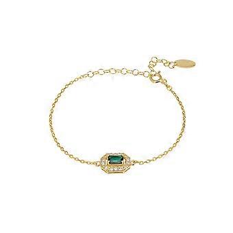 Whistledown Emerald Gold Gemstone Bracelet for Women, 925 Sterling Silver Dipped in 18ct Gold, Adjustable 15-20cm Length