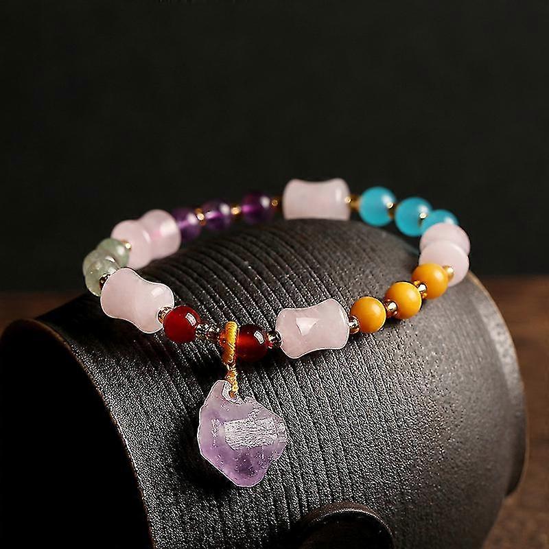 Multicolor Amethyst Bracelet For Women Girls Beaded Hand Chain Elastic Stretch Bracelet